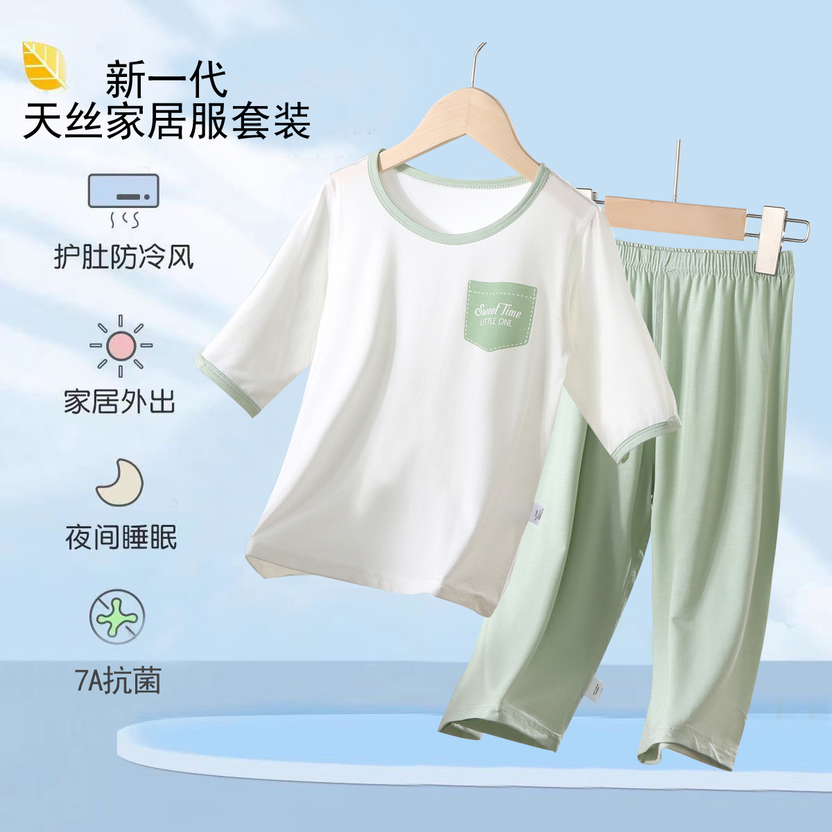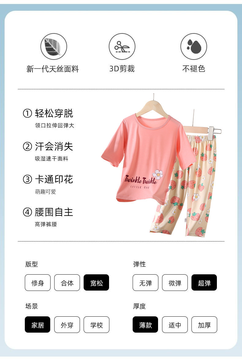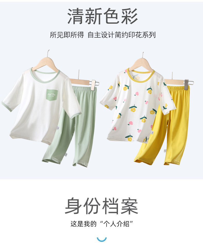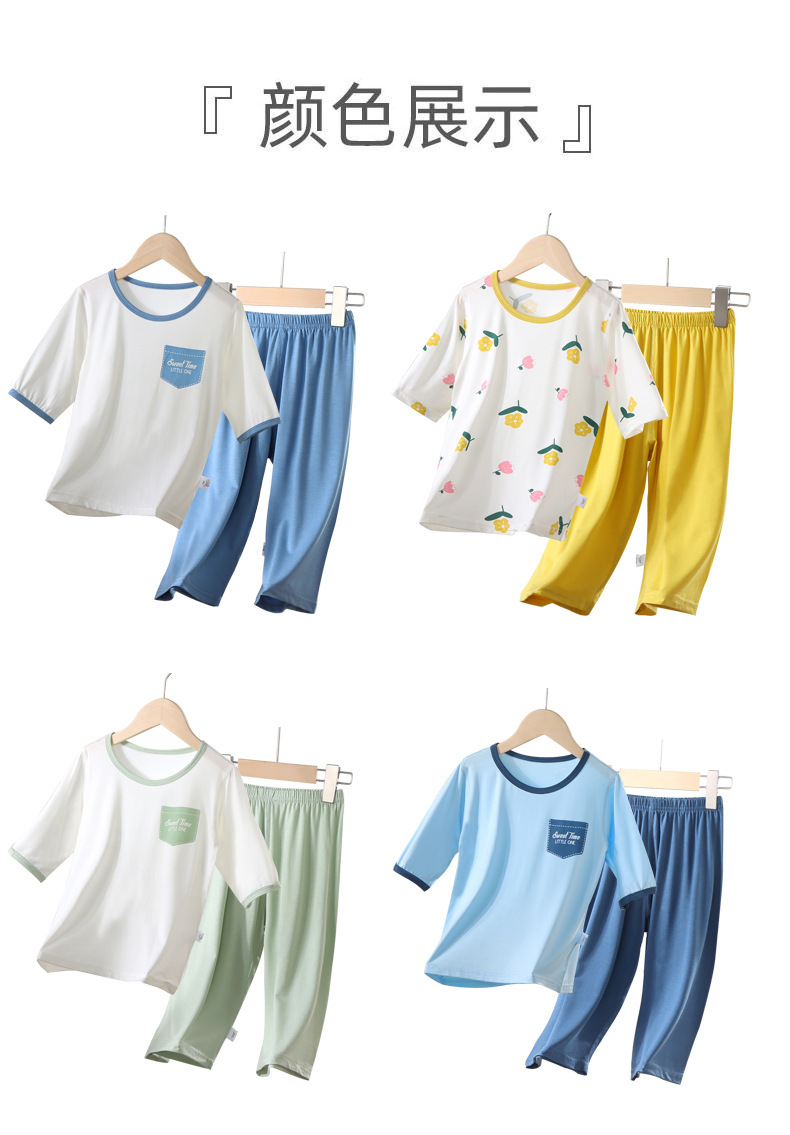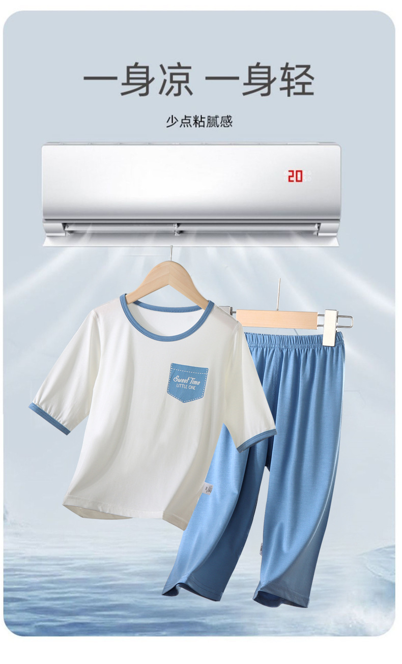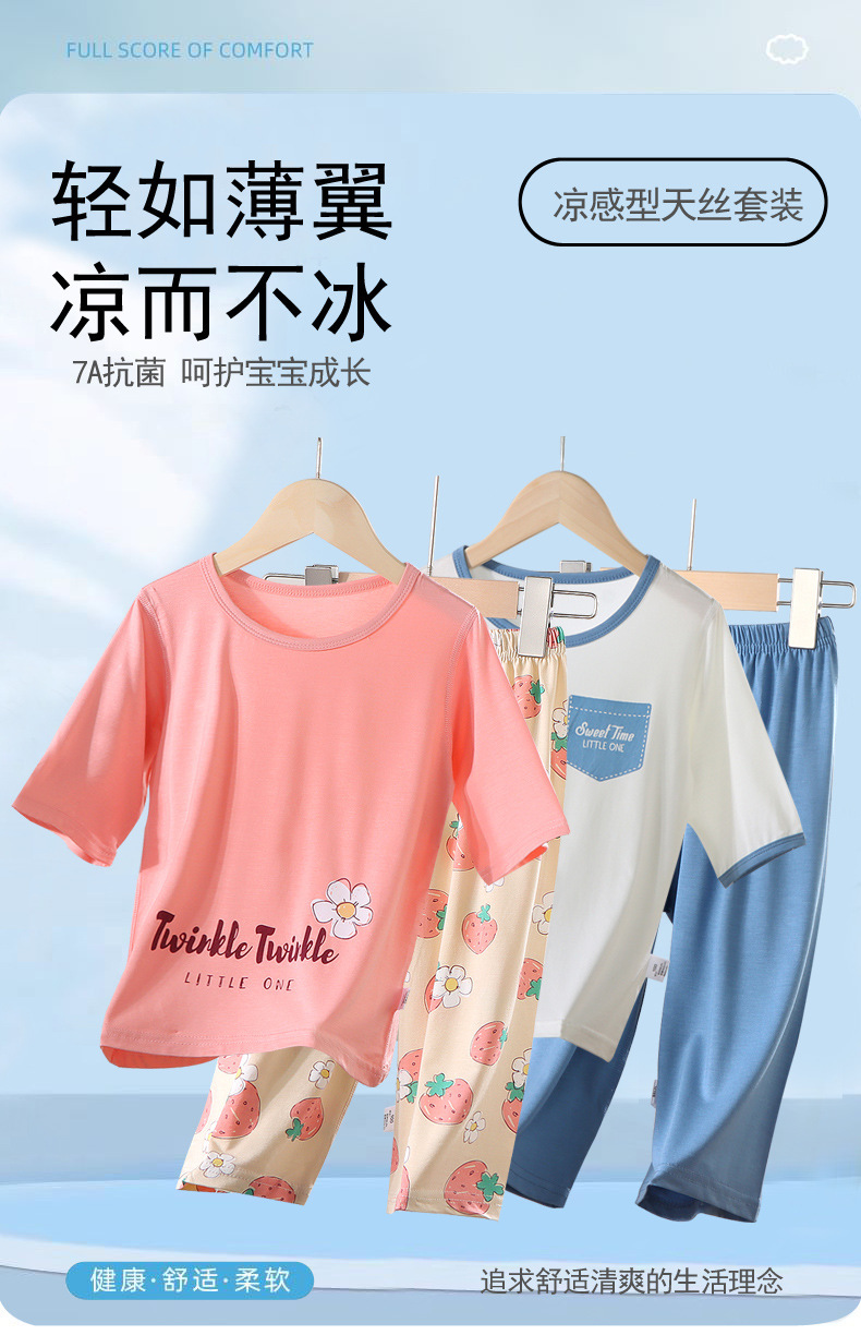 어린이 여름 얇은 잠옷 소년 Tencel은 중형 및 대형 어린이 가정 세트 아기 소녀의 여름 에어컨 옷을 입습니다.스토어 가기