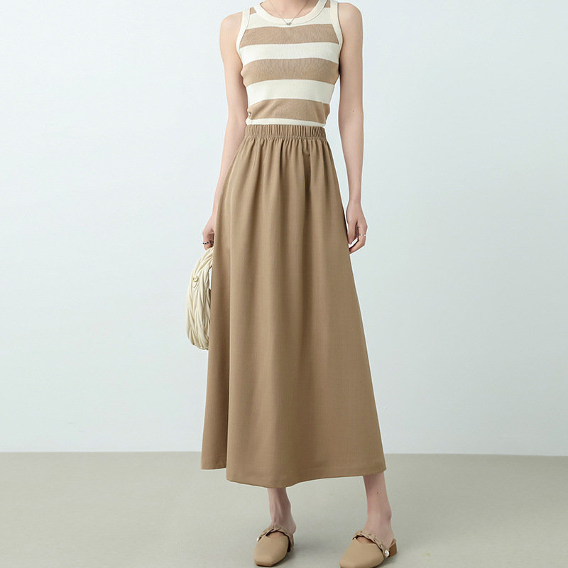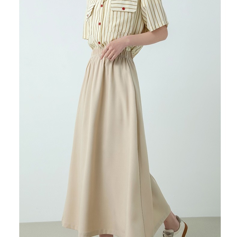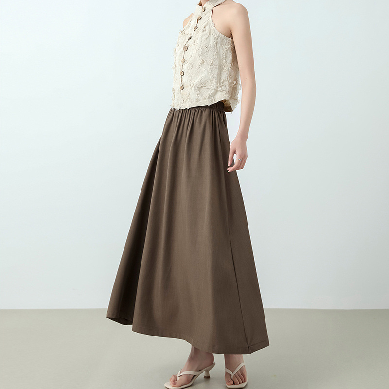 2024 여름 새로운 캐주얼 패션 쉬폰 세트 A 라인 우산 스커트 국가 스타일 복고풍 느슨한 올 매치 롱 스커트 봄과 여름스토어 가기