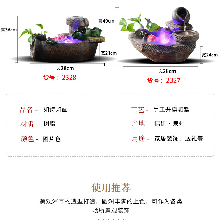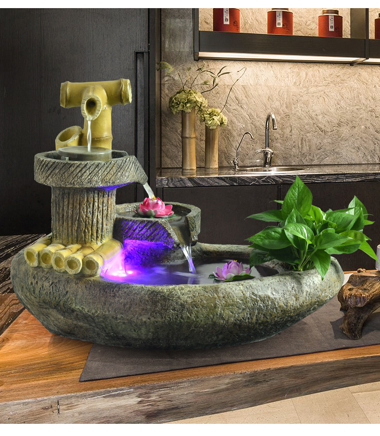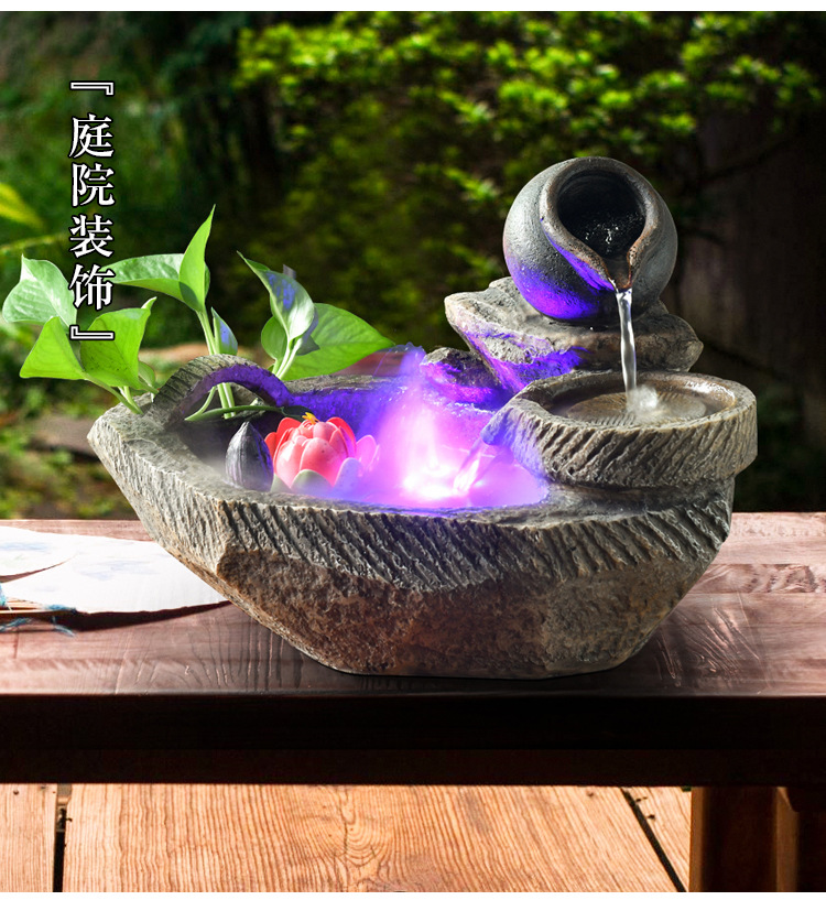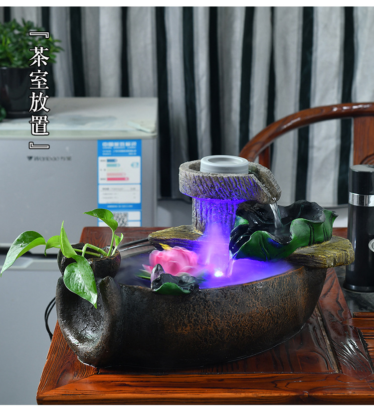 홈 장식 데스크탑 흐르는 물 장식 실내 마이크로 조경 조경 원자화 가습기 Rockery 석재 공장 목회 분수스토어 가기
