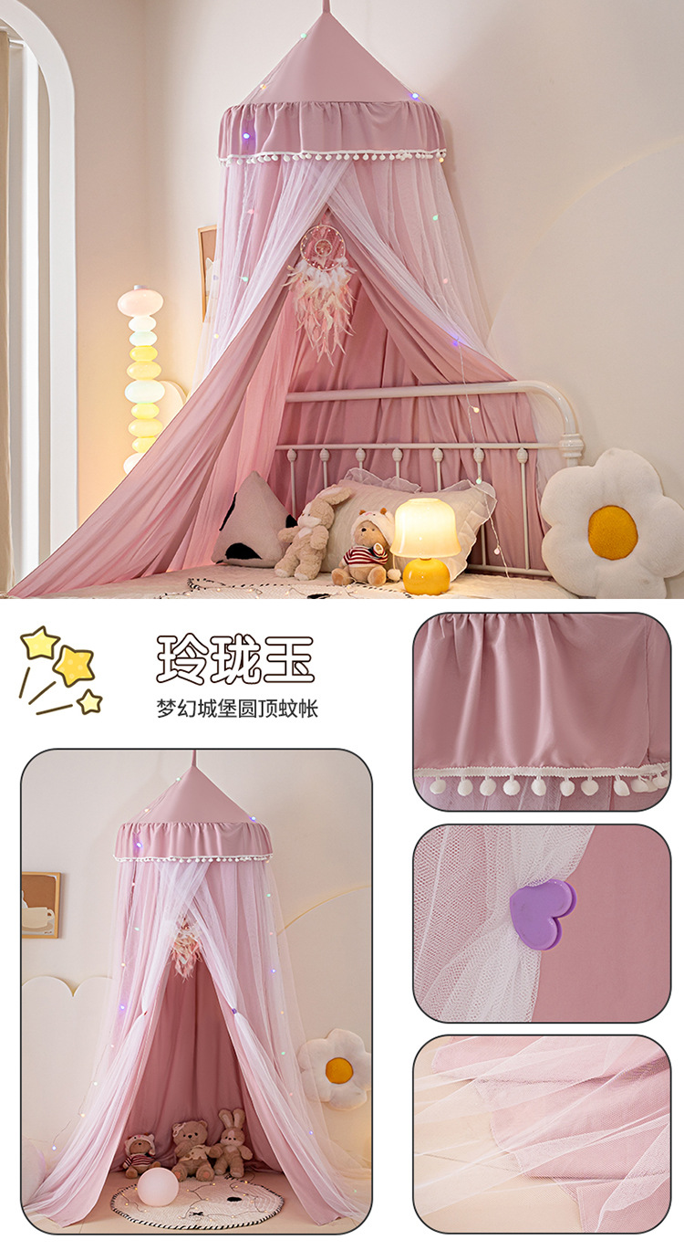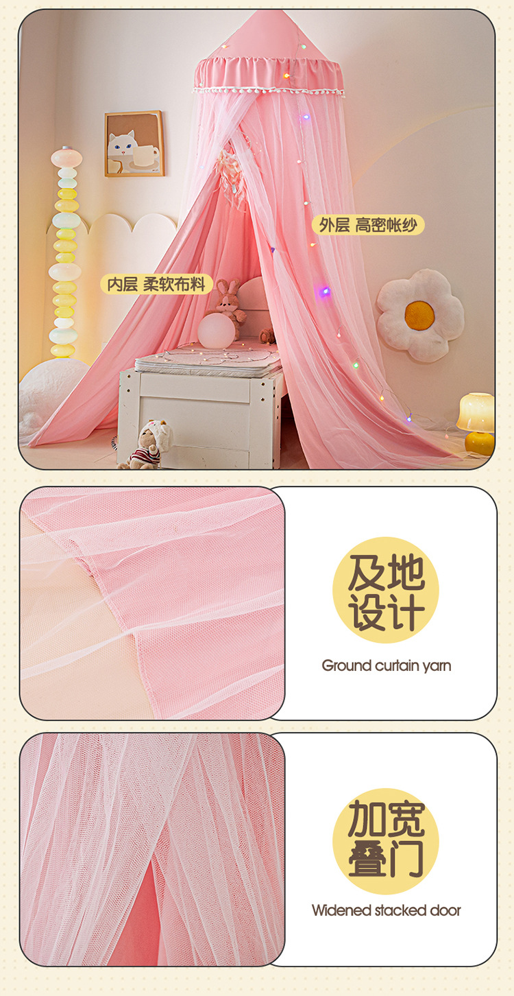 2024 새로운 어린이 라운드 더블 레이어 천 커튼 모기장 돔 침대 커튼 방풍 아기 침대 둘레 침대 장식 텐트