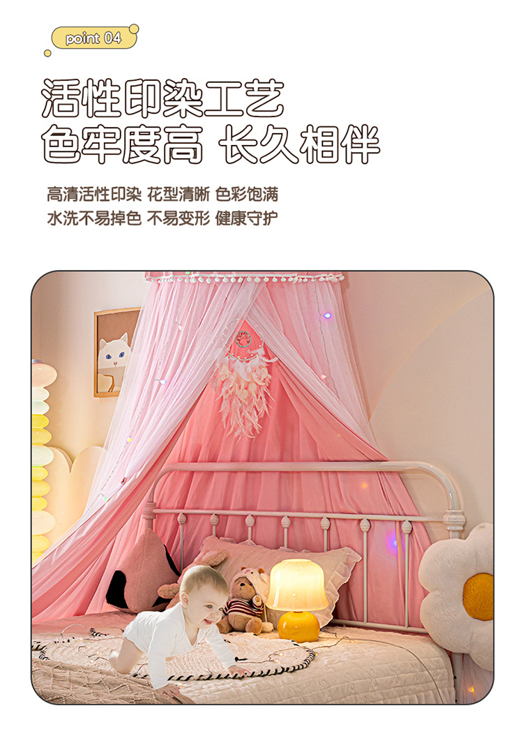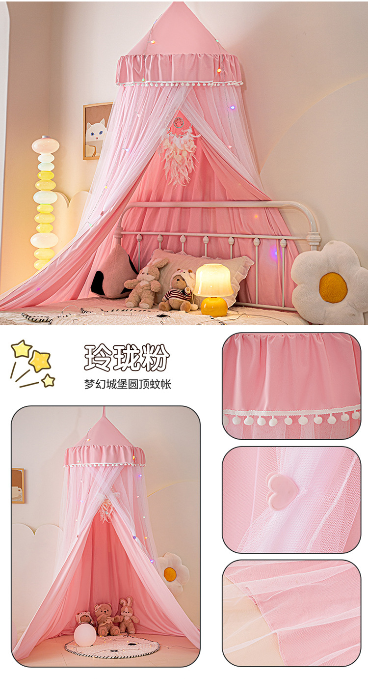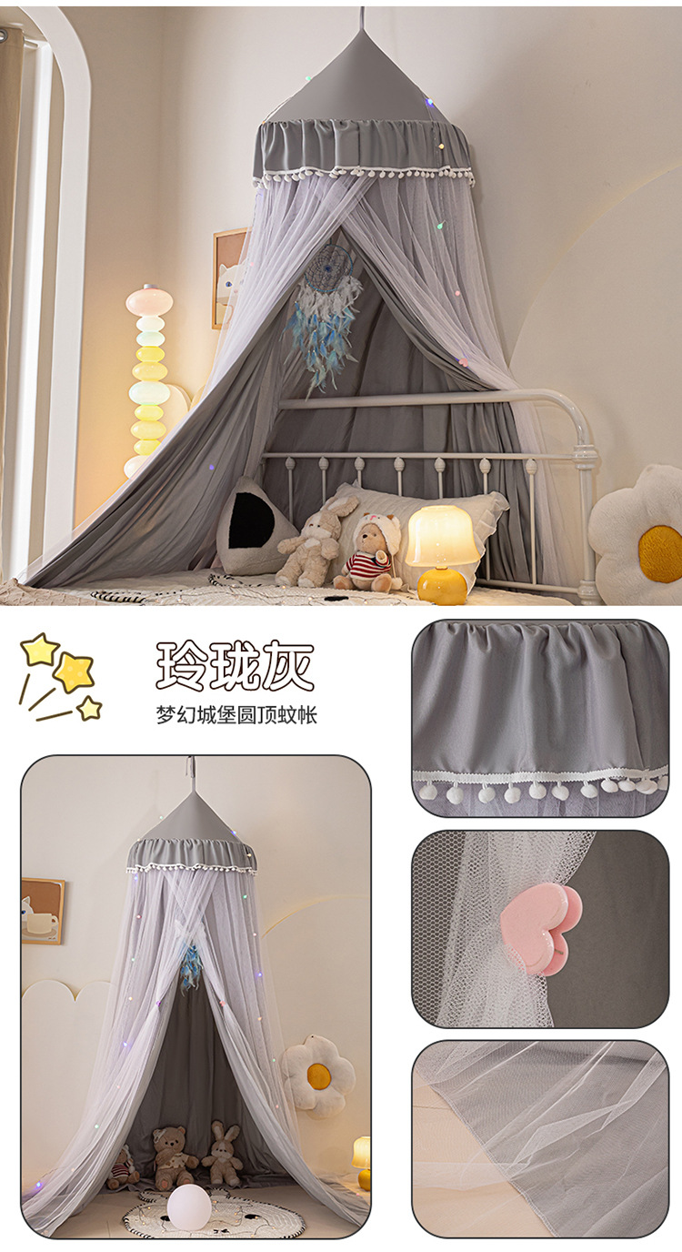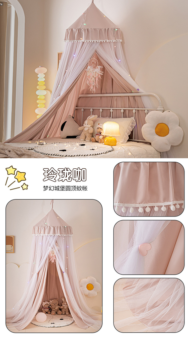 2024 새로운 어린이 라운드 더블 레이어 천 커튼 모기장 돔 침대 커튼 방풍 아기 침대 둘레 침대 장식 텐트스토어 가기