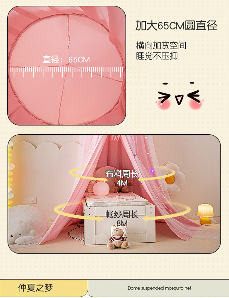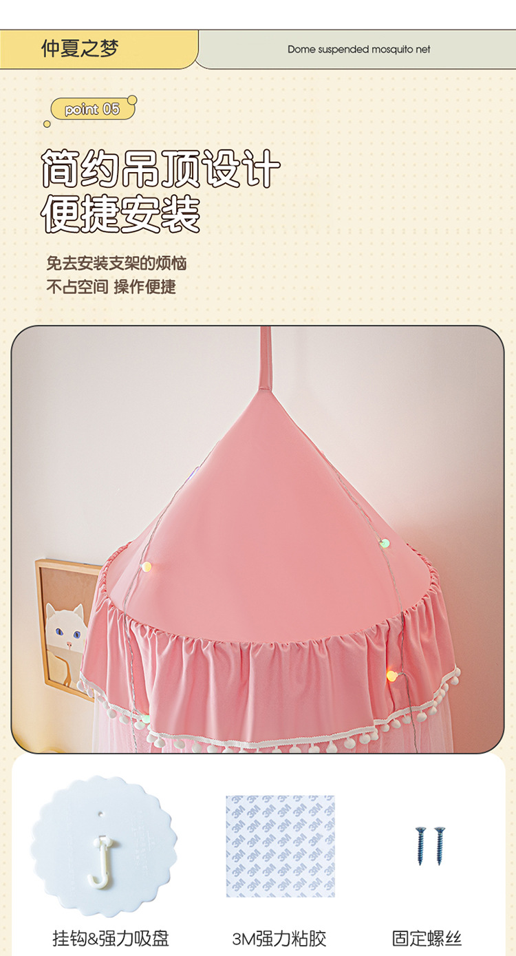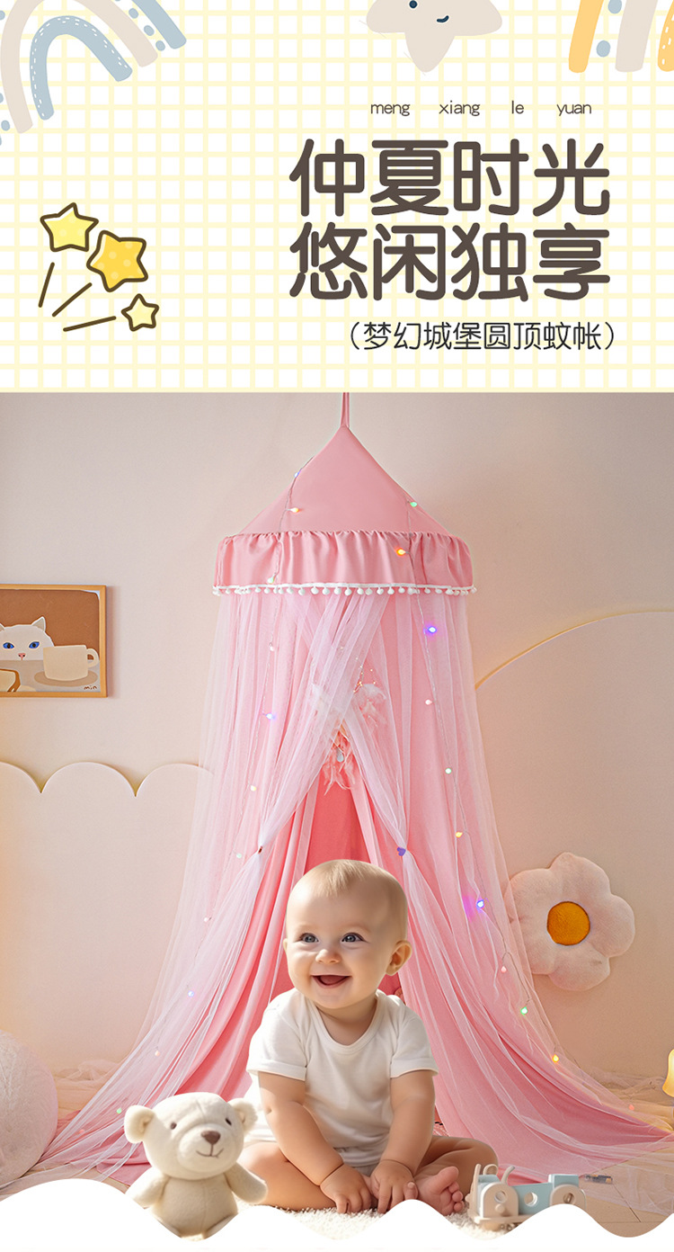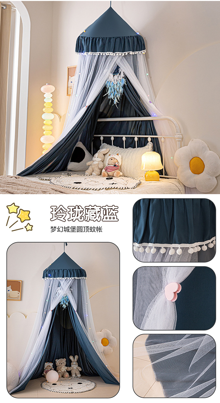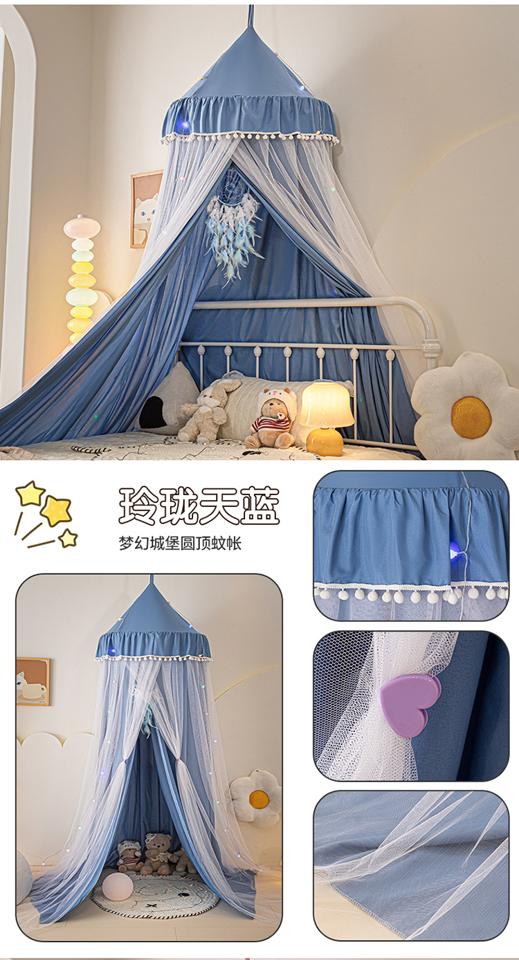 2024 새로운 어린이 라운드 더블 레이어 천 커튼 모기장 돔 침대 커튼 방풍 아기 침대 둘레 침대 장식 텐트스토어 가기