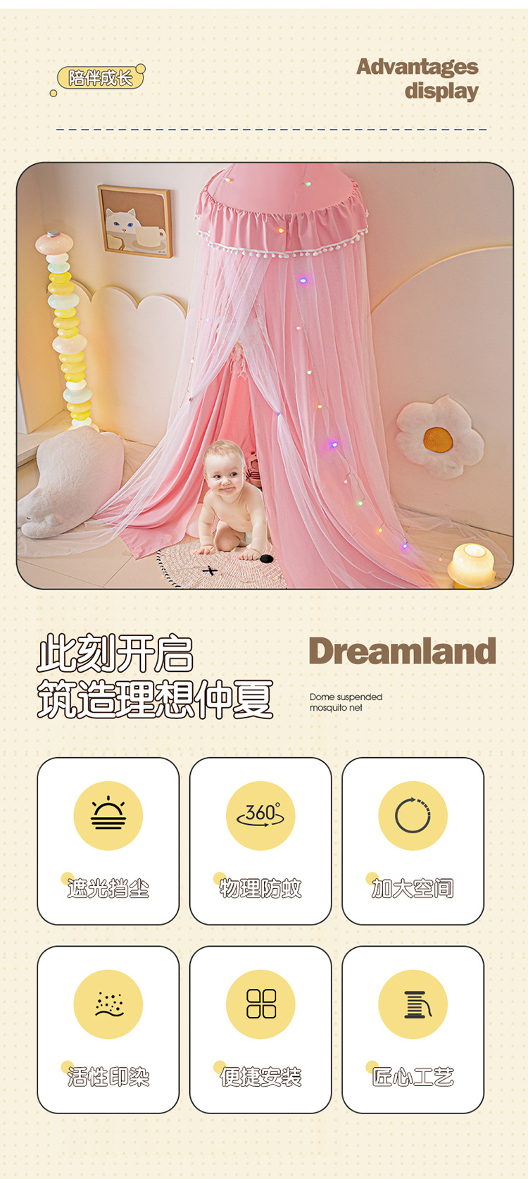• 0.9-1.5 m 침대 모기장 + 가벼운 벨트 + 꿈의 포수에 적합