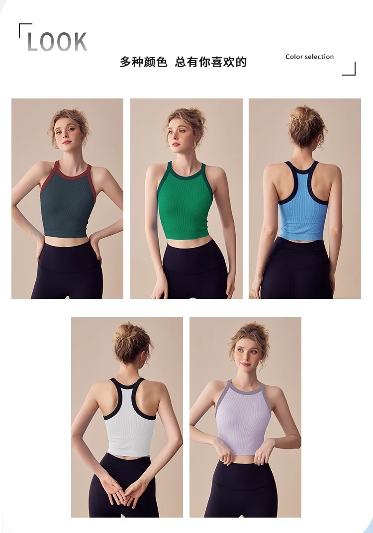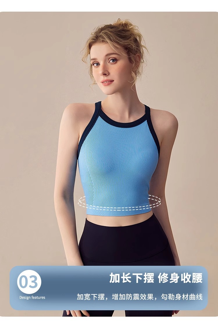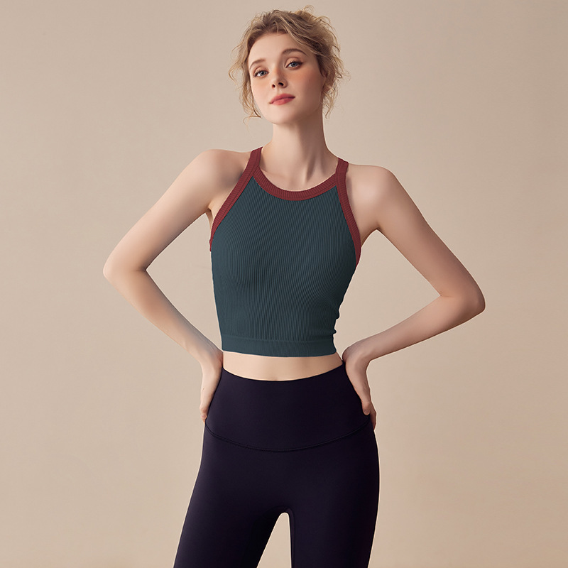 가슴 패드가있는 스포츠 조끼 충격 방지 러닝 속옷 아우터웨어 레트로 요가 옷 I 자형 브라 리브 쇼트