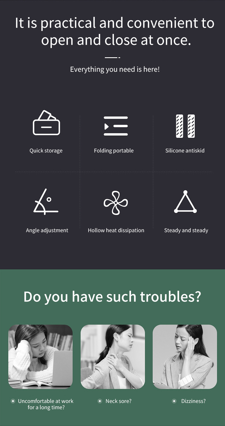 노트북 스탠드 냉각 플라스틱 실리콘 데스크탑 높이 조절 지지대 높이 조절 가능 냉각 기능
