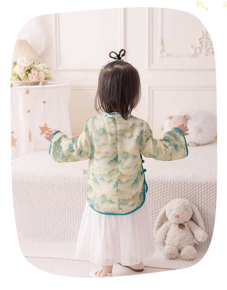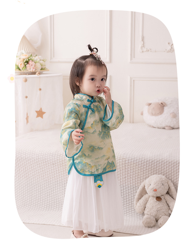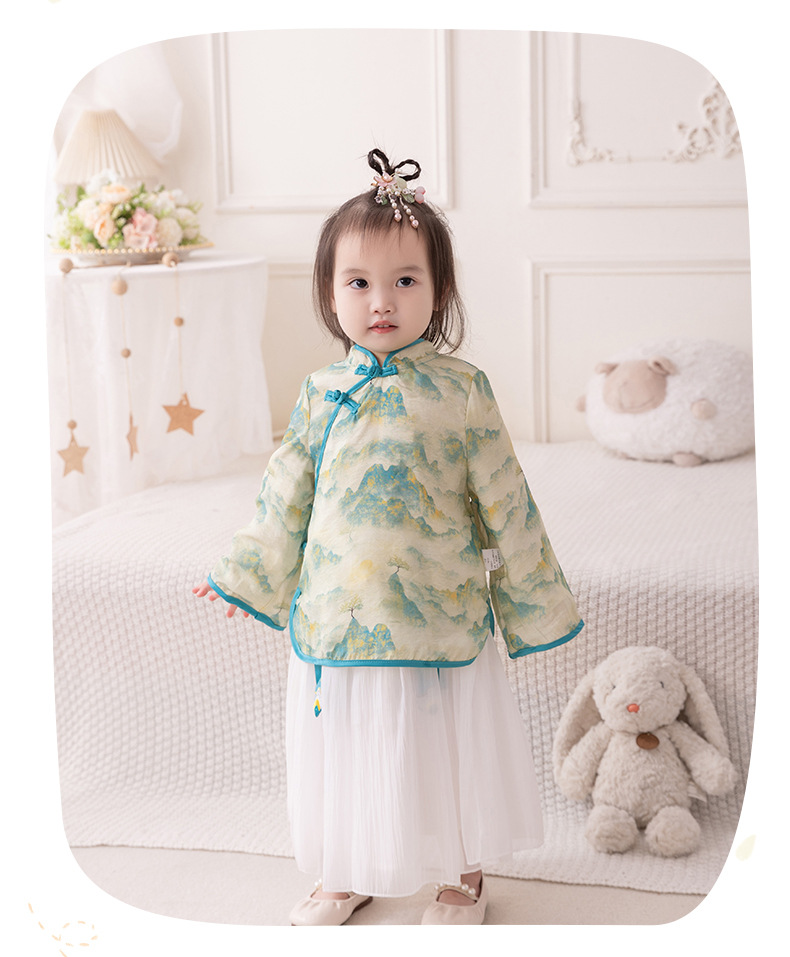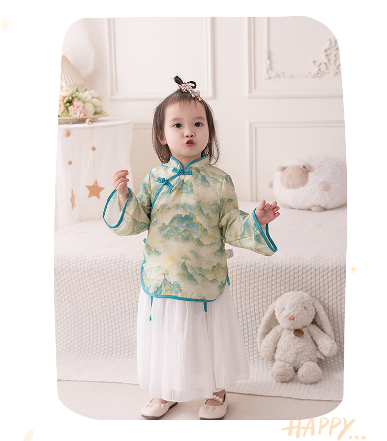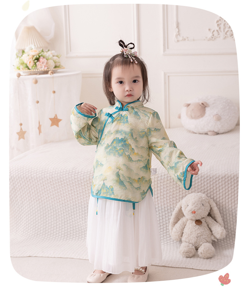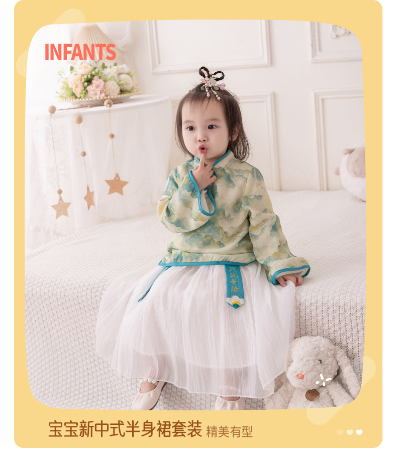 2024 아기 소녀의 새로운 중국 스타일 세트 봄 스커트 투피스 세트 소녀의 중국 스타일 수 놓은 한푸 가을 3561스토어 가기