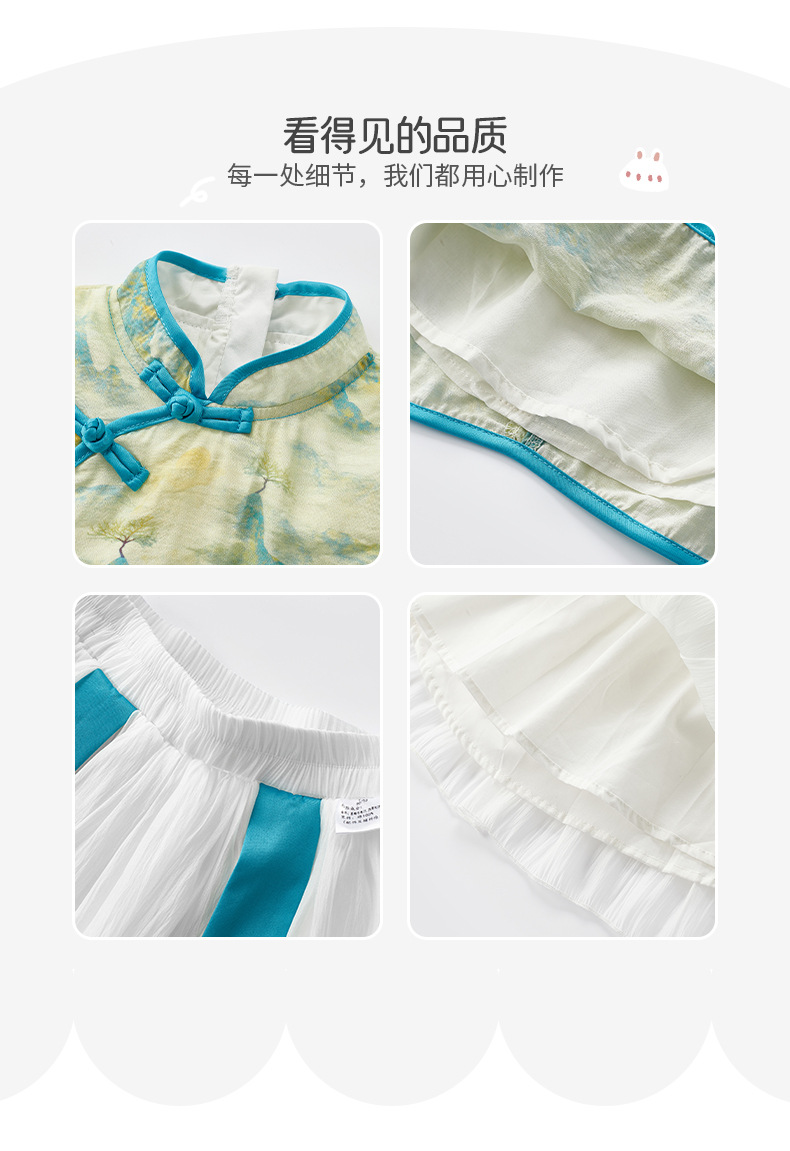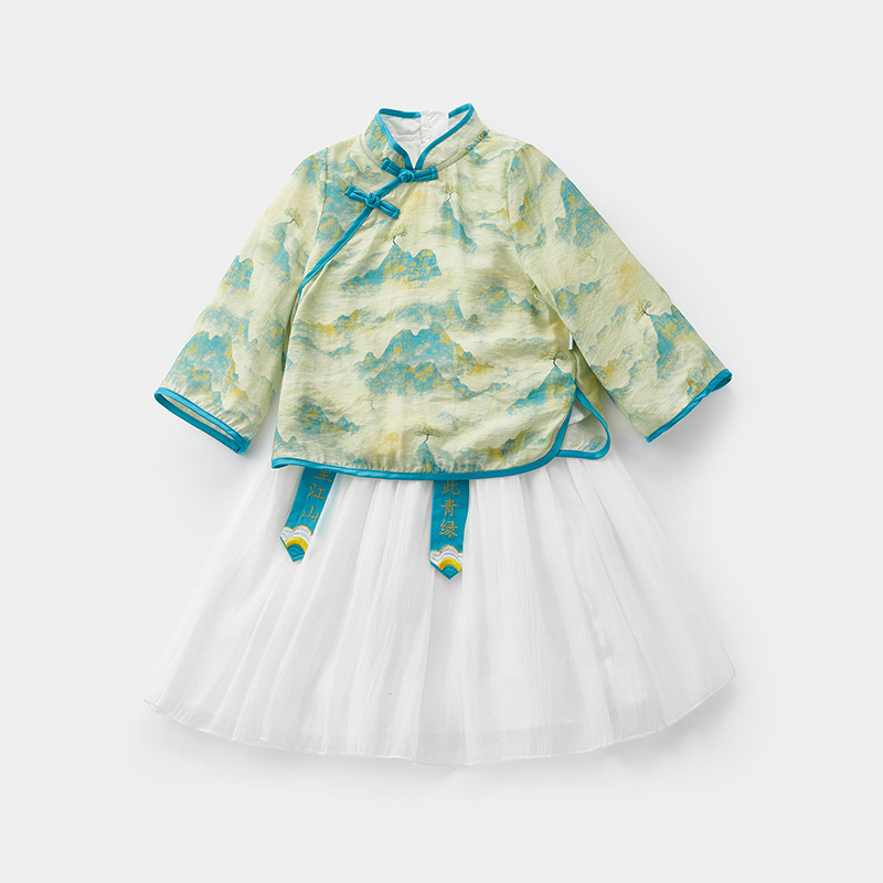 2024 아기 소녀의 새로운 중국 스타일 세트 봄 스커트 투피스 세트 소녀의 중국 스타일 수 놓은 한푸 가을 3561