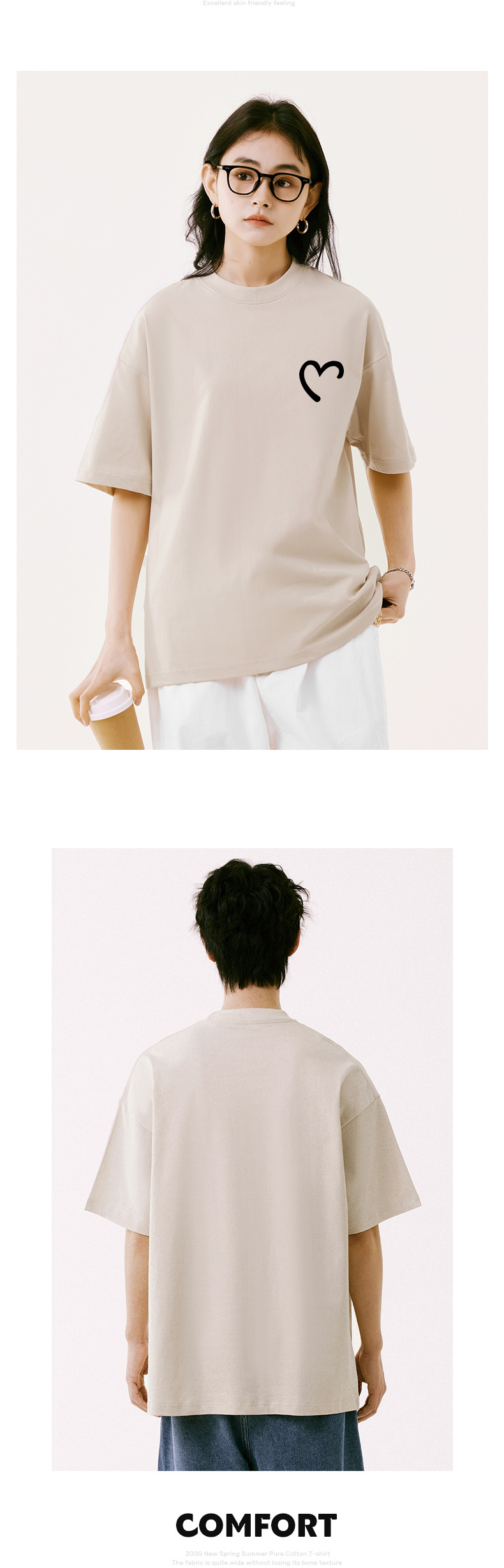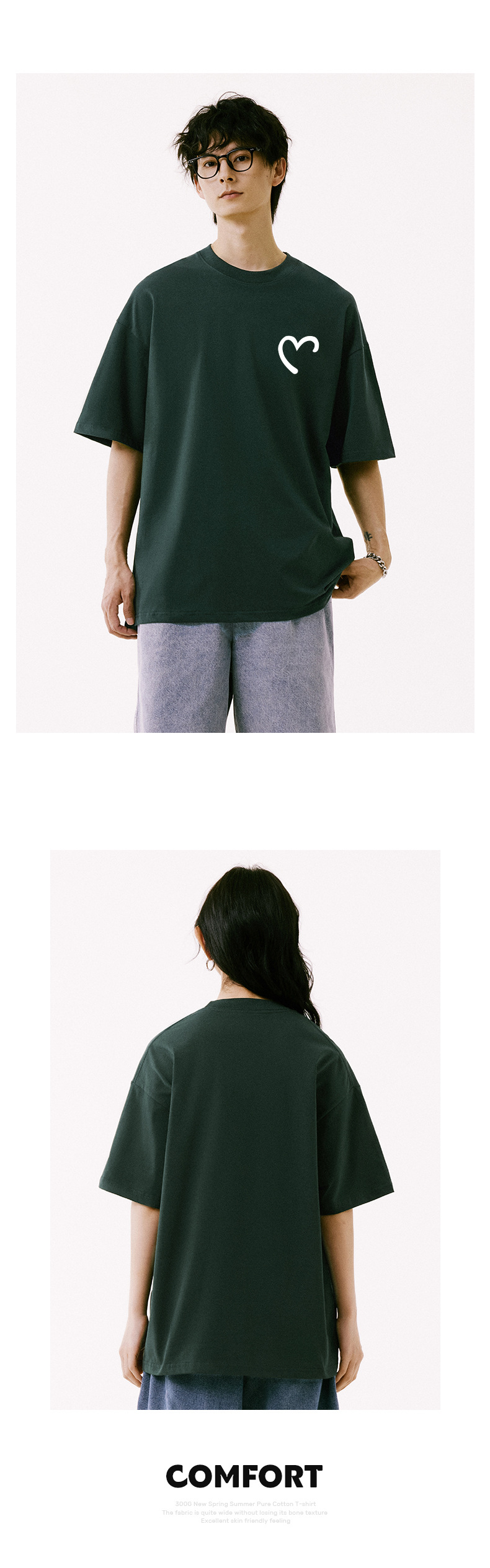 반팔 남성 및 여성 티셔츠 여름 단순 사랑 반팔 무거운 느슨한 드롭 어깨 소매 커플 착용 티셔츠 순수 코튼 편안한스토어 가기
