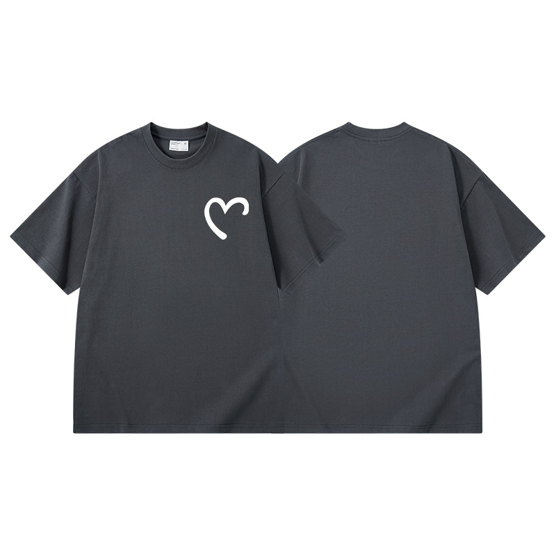 반팔 남성 및 여성 티셔츠 여름 단순 사랑 반팔 무거운 느슨한 드롭 어깨 소매 커플 착용 티셔츠 순수 코튼 편안한