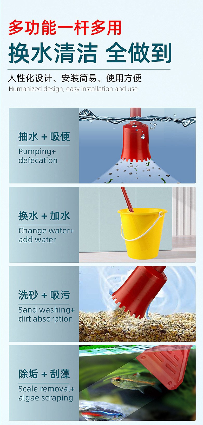 전기 어항 물 교환기 자동 워터 펌프 필터 모래 세척 배설물 흡입 장치 가정용 수족관 청소 도구