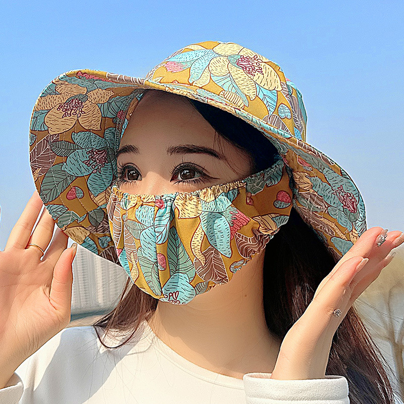 큰 테두리 커버 얼굴 태양 보호 모자 여성의 여름 태양 보호 어부 모자 야외 UV 보호 접이식 태양 모자스토어 가기