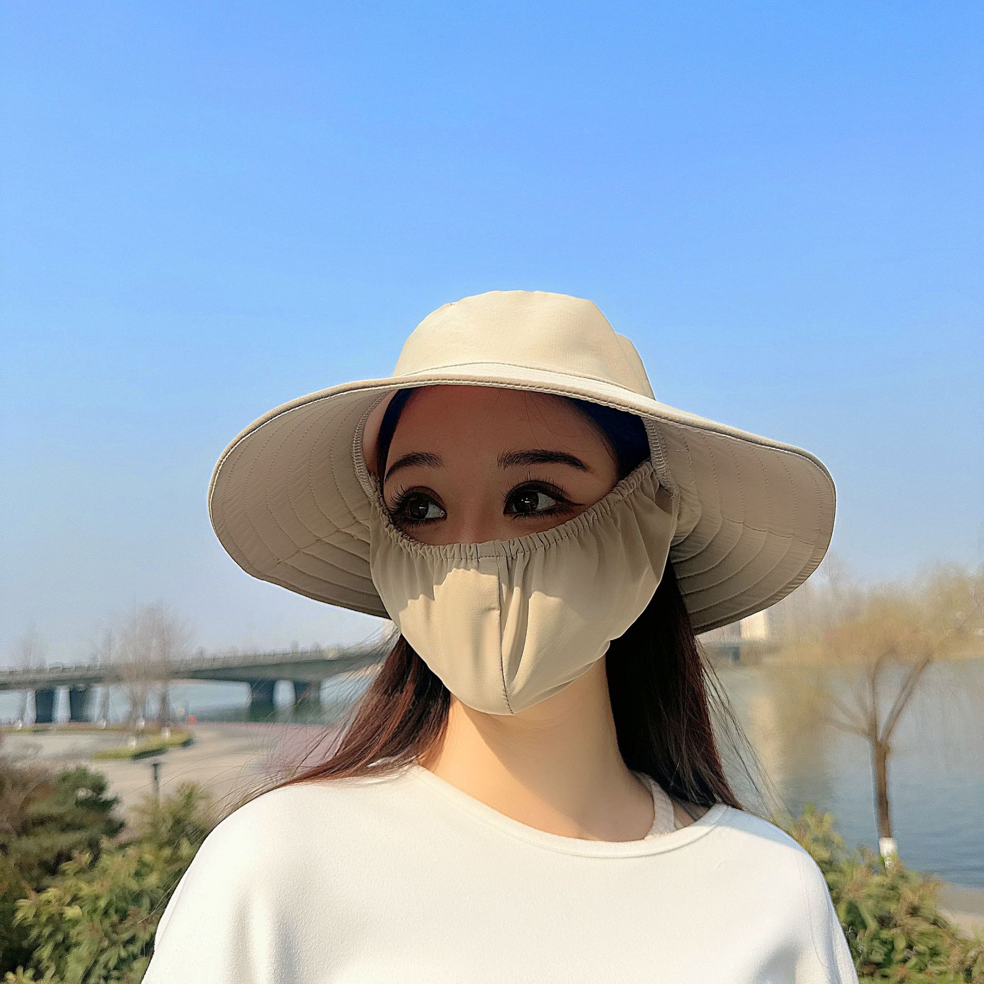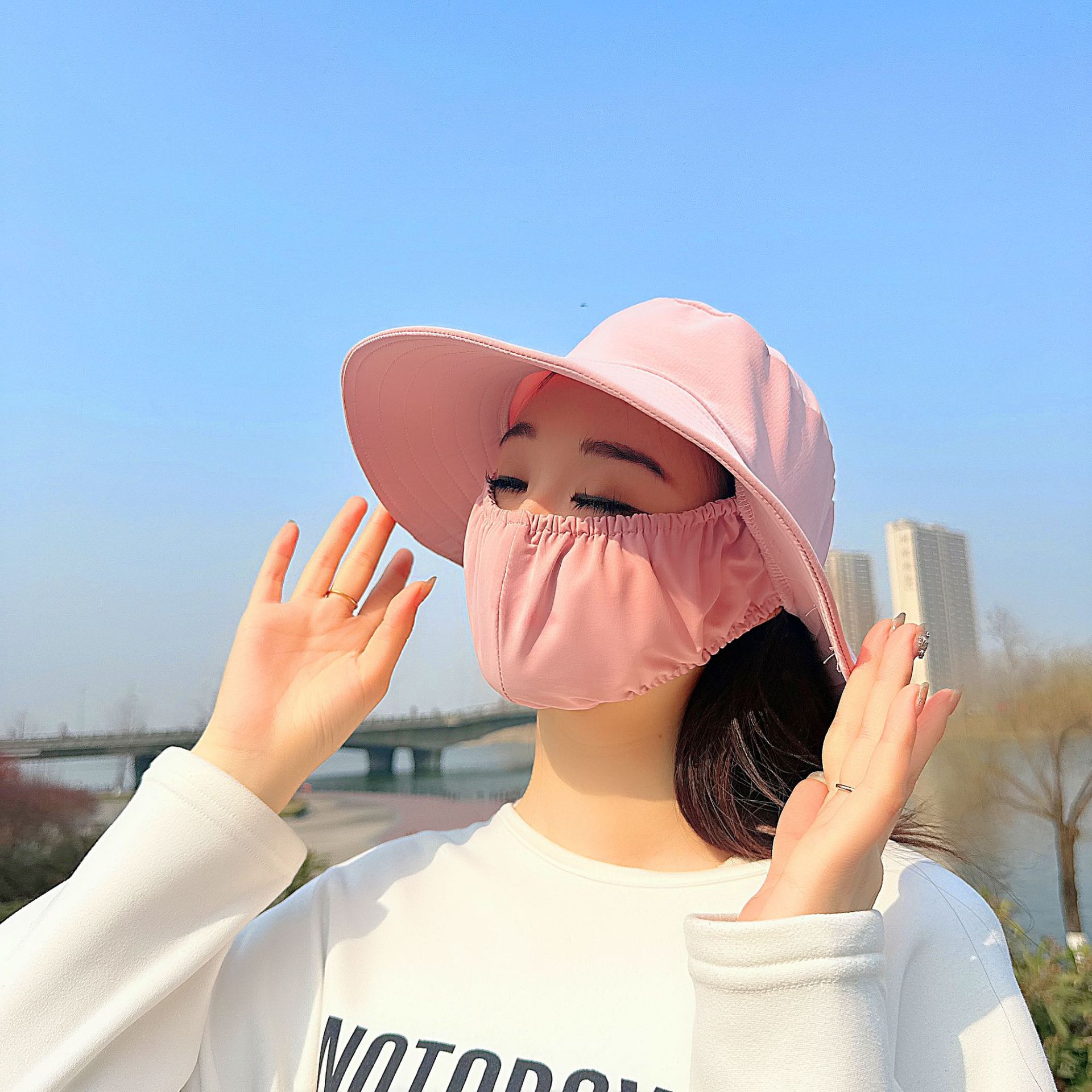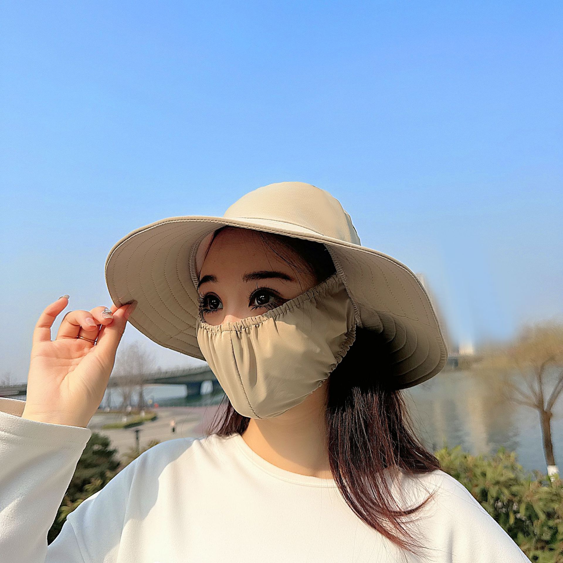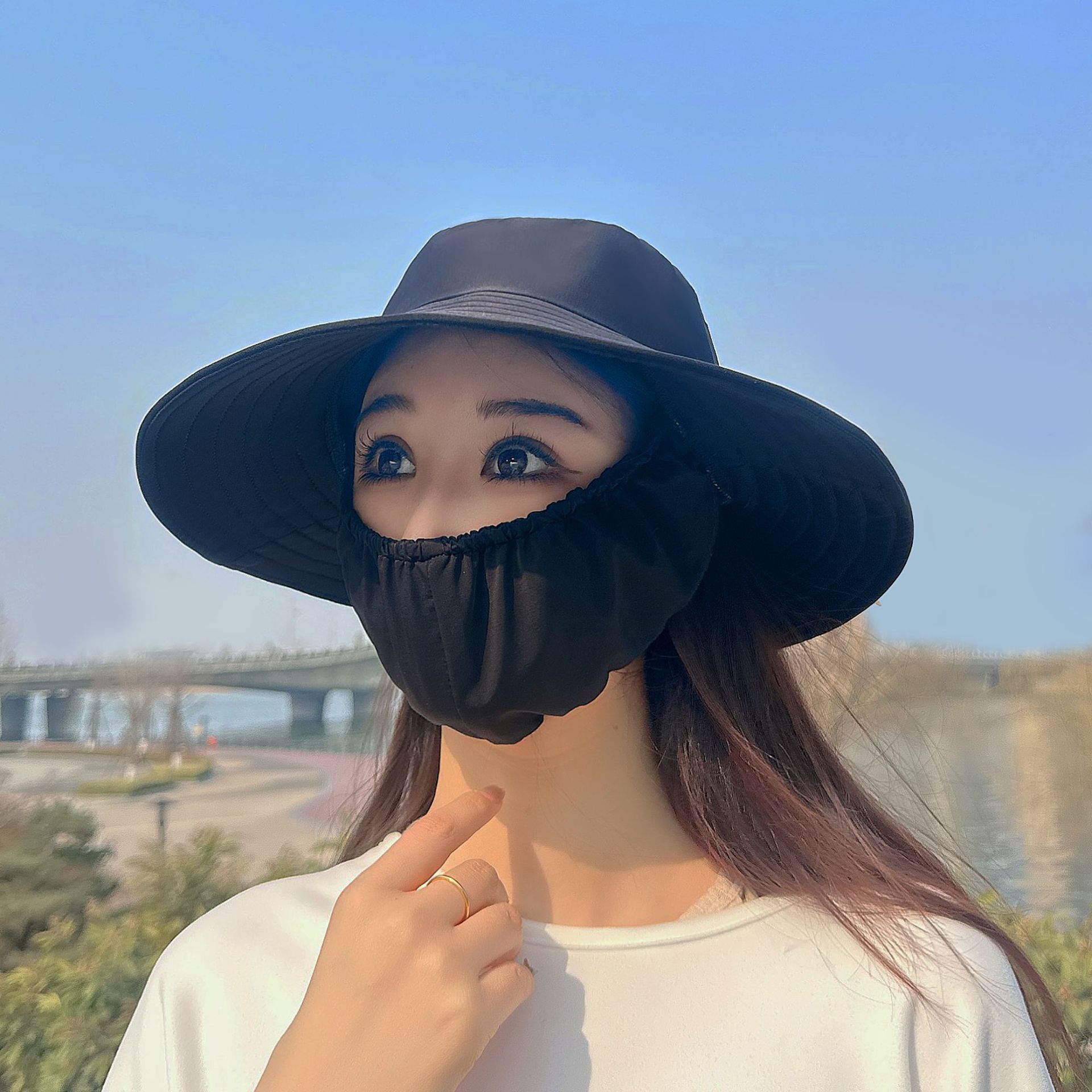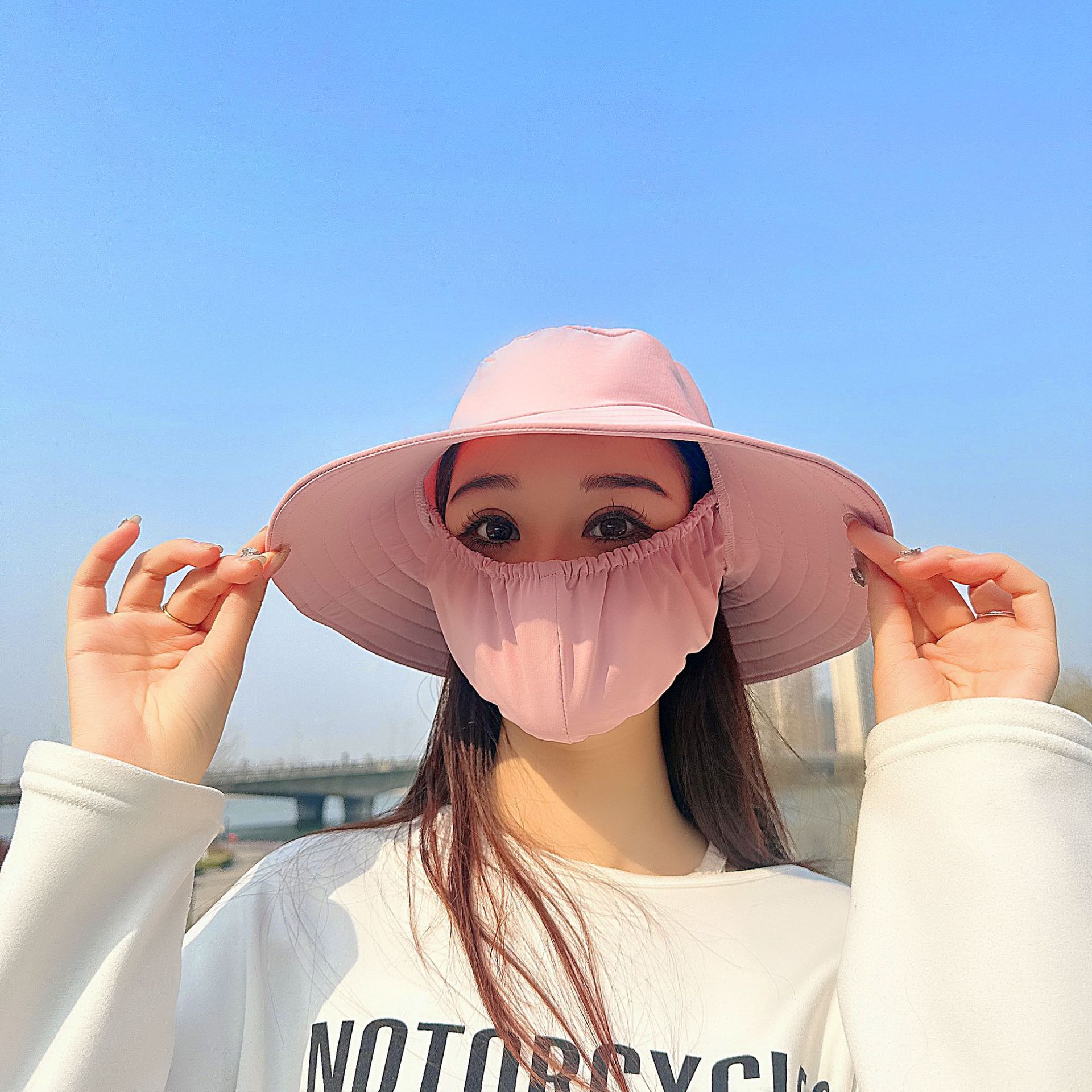 큰 테두리 커버 얼굴 태양 보호 모자 여성의 여름 태양 보호 어부 모자 야외 UV 보호 접이식 태양 모자