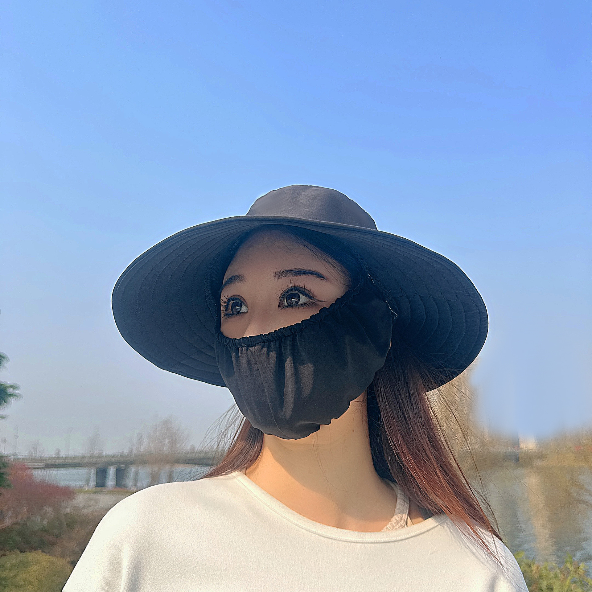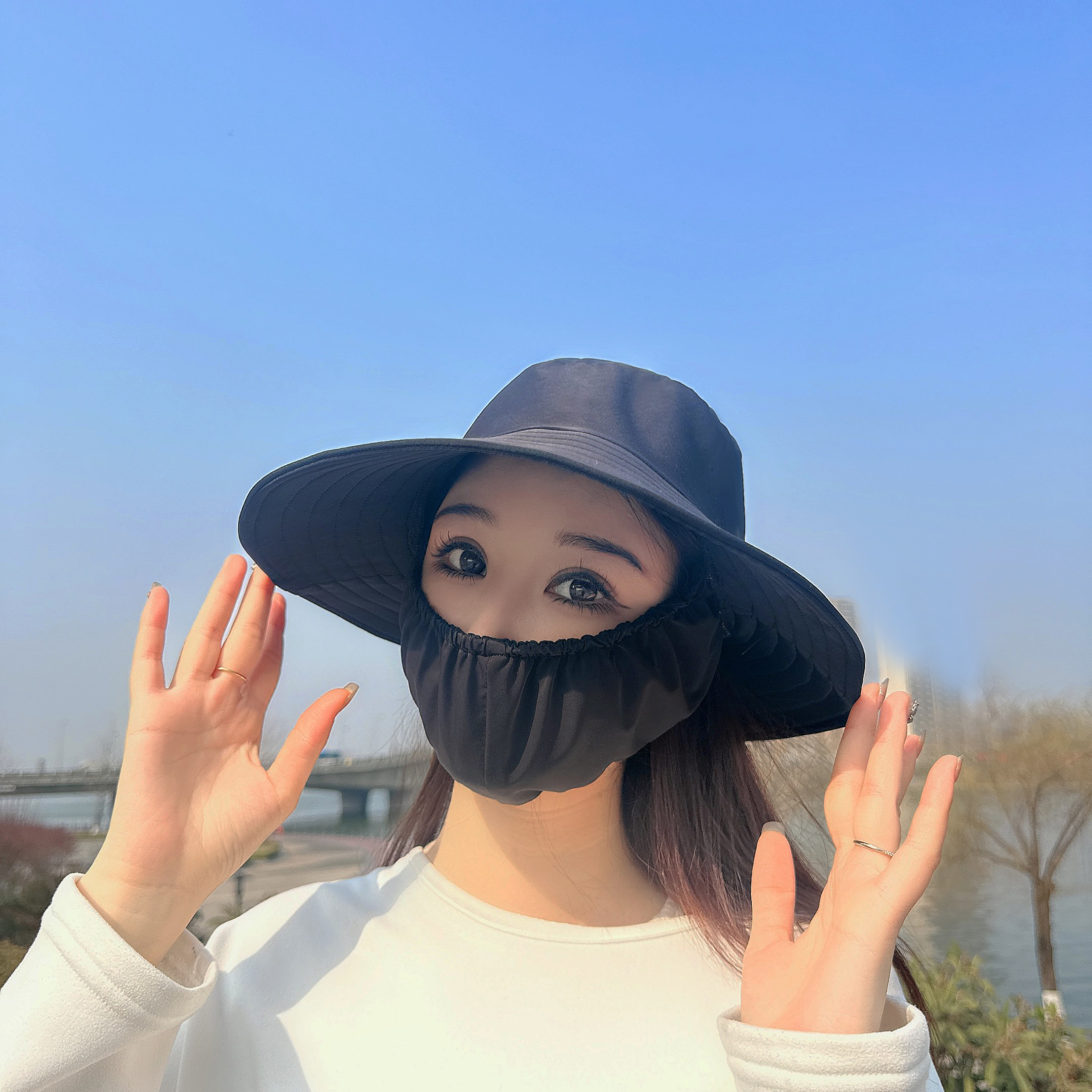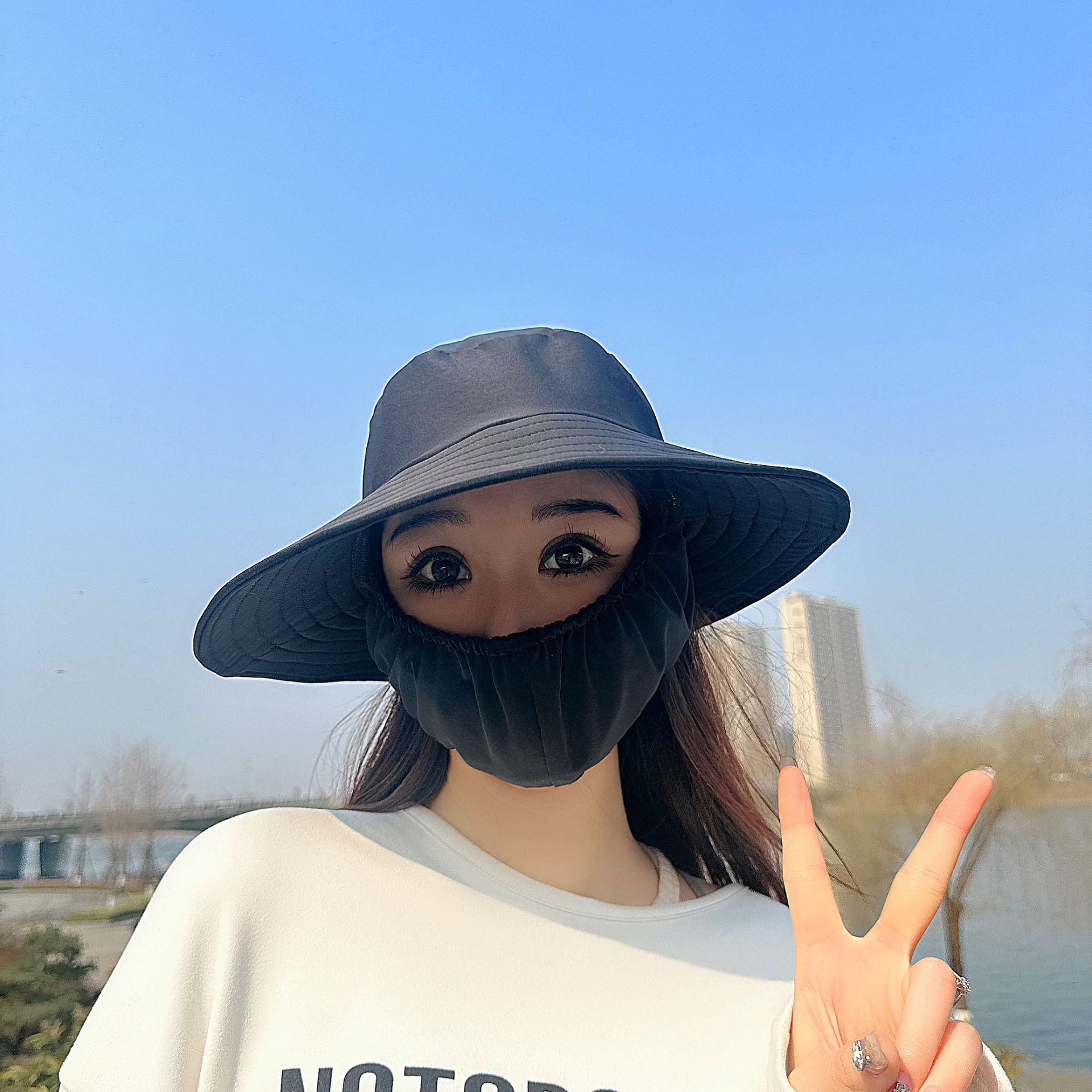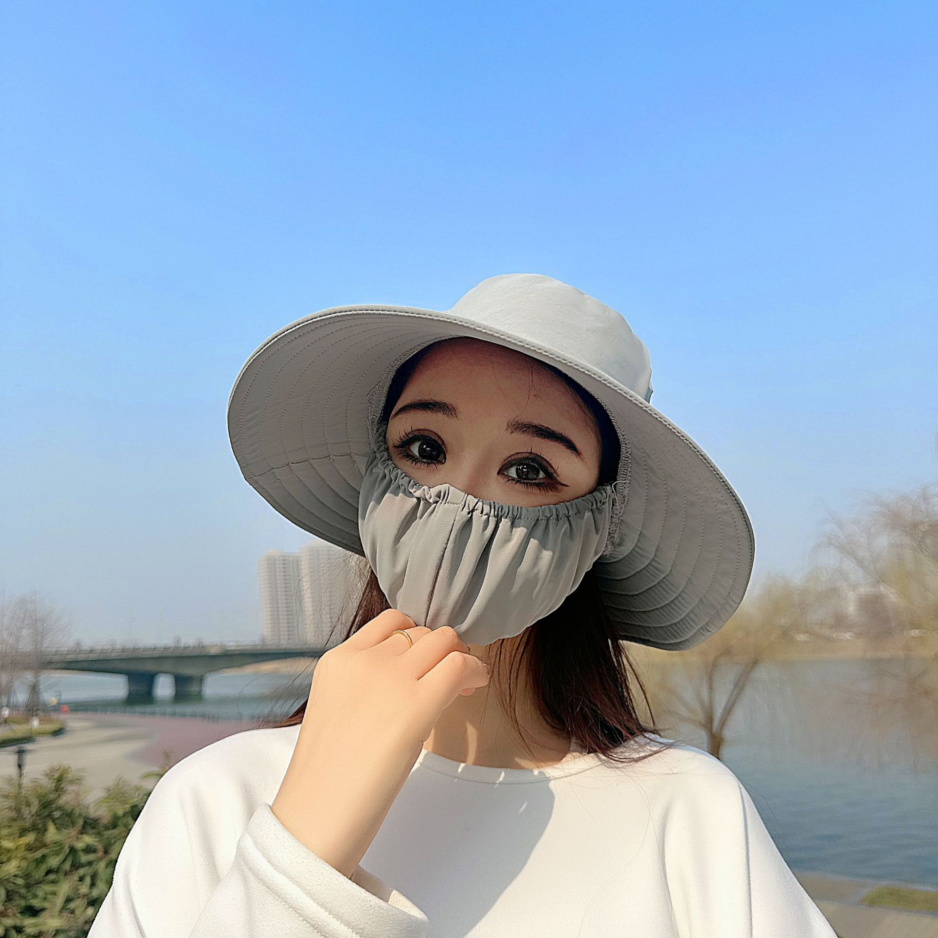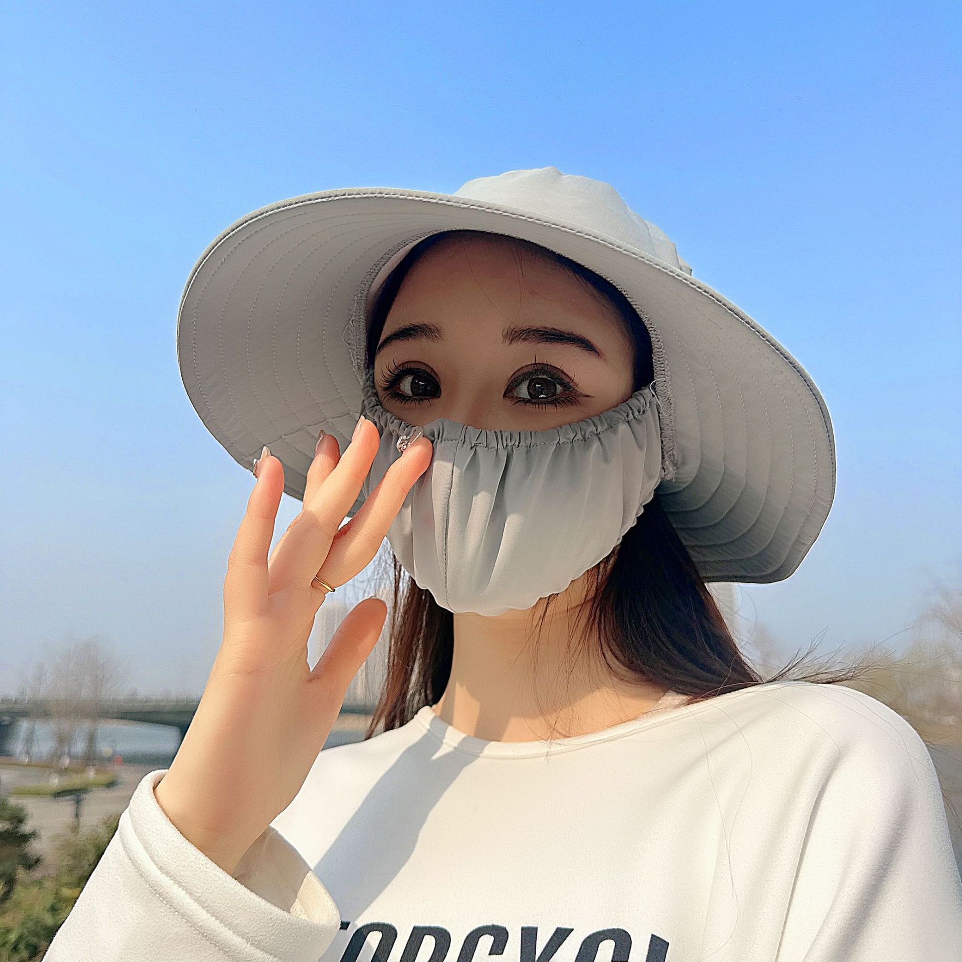 큰 테두리 커버 얼굴 태양 보호 모자 여성의 여름 태양 보호 어부 모자 야외 UV 보호 접이식 태양 모자