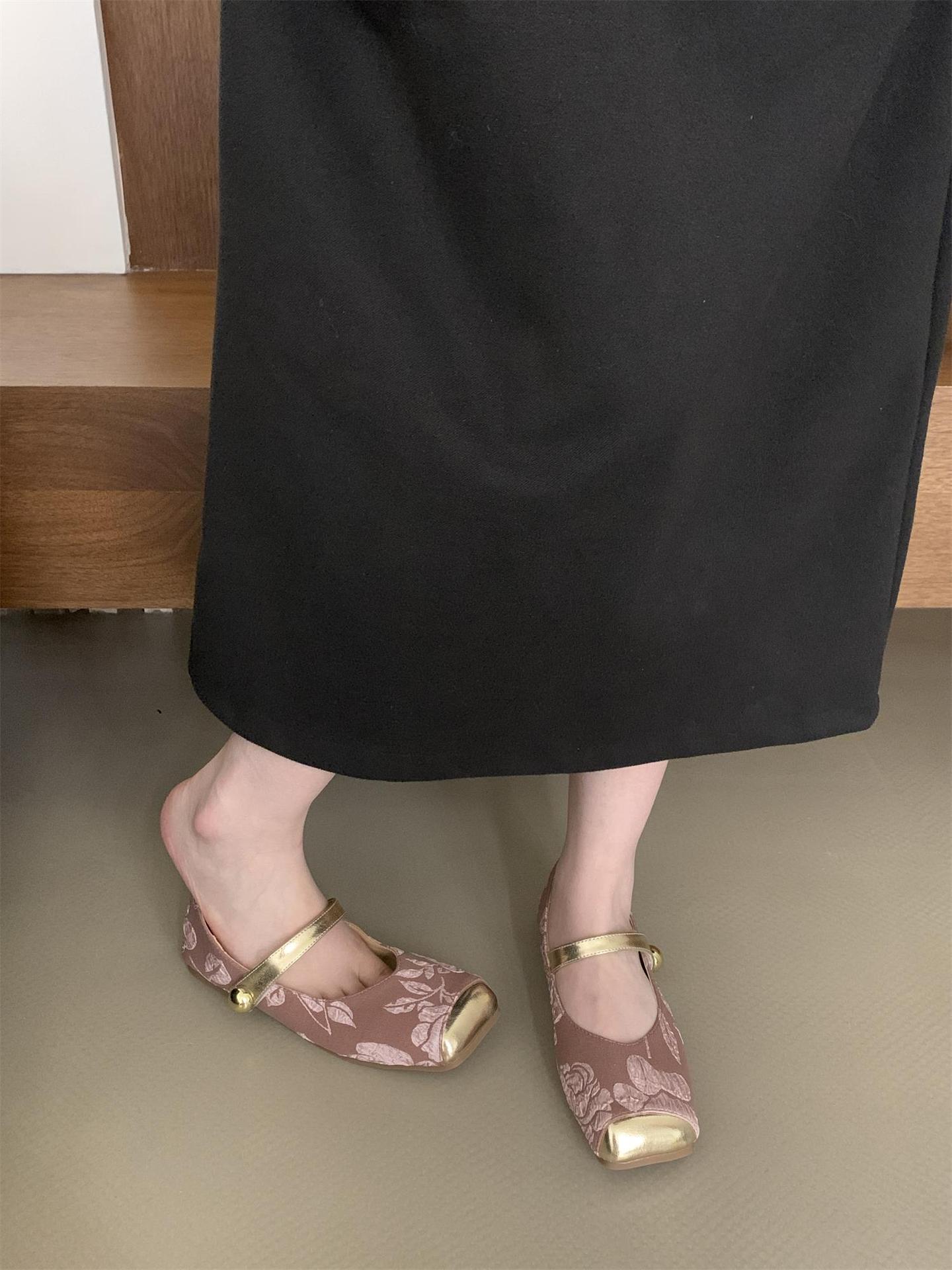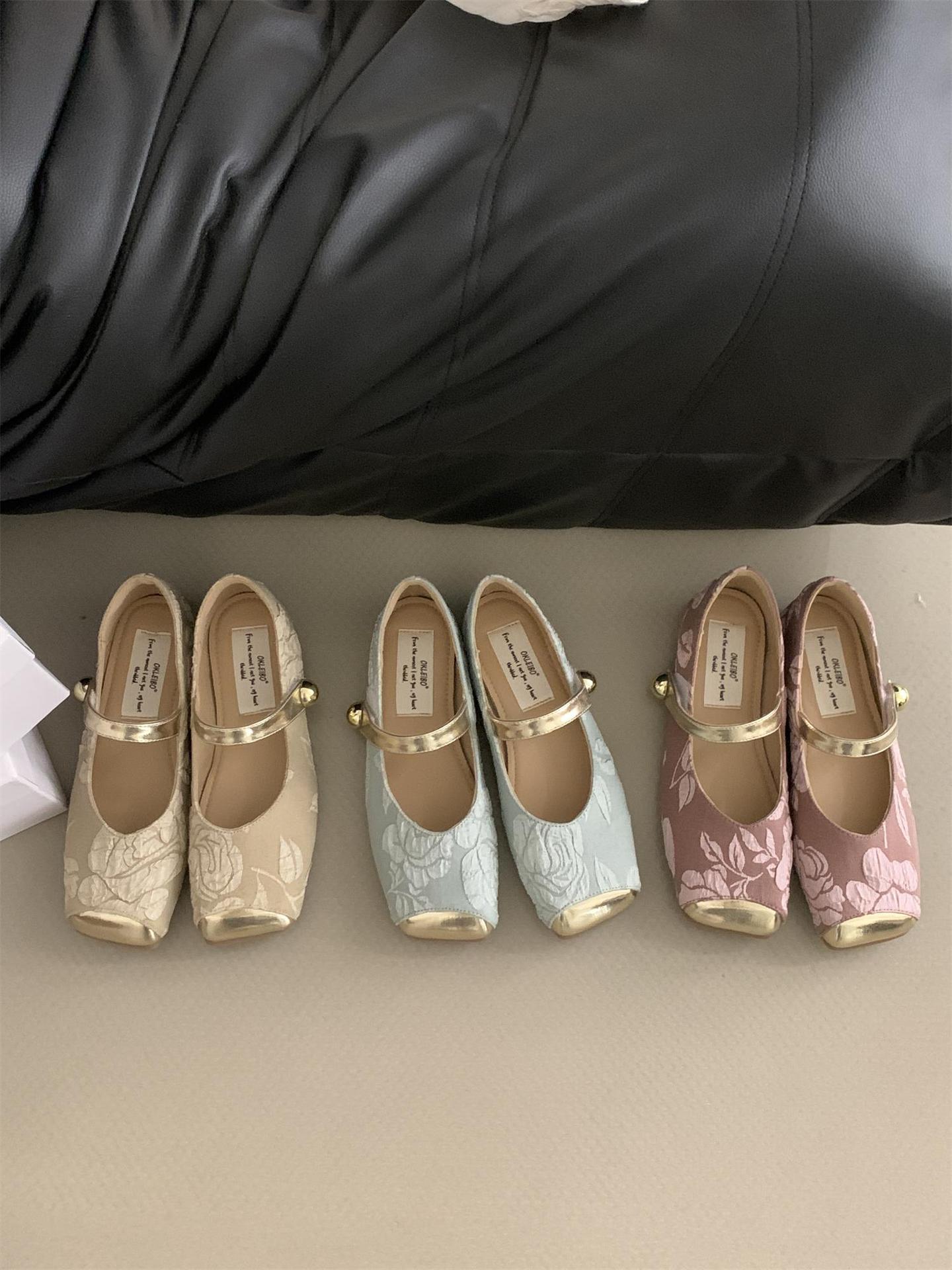 니치 스퀘어 토 레트로 여성을위한 새로운 중국 싱글 레이어 신발 2024 봄 새로운 발레 스타일 플랫 슈즈 매칭 스커트스토어 가기