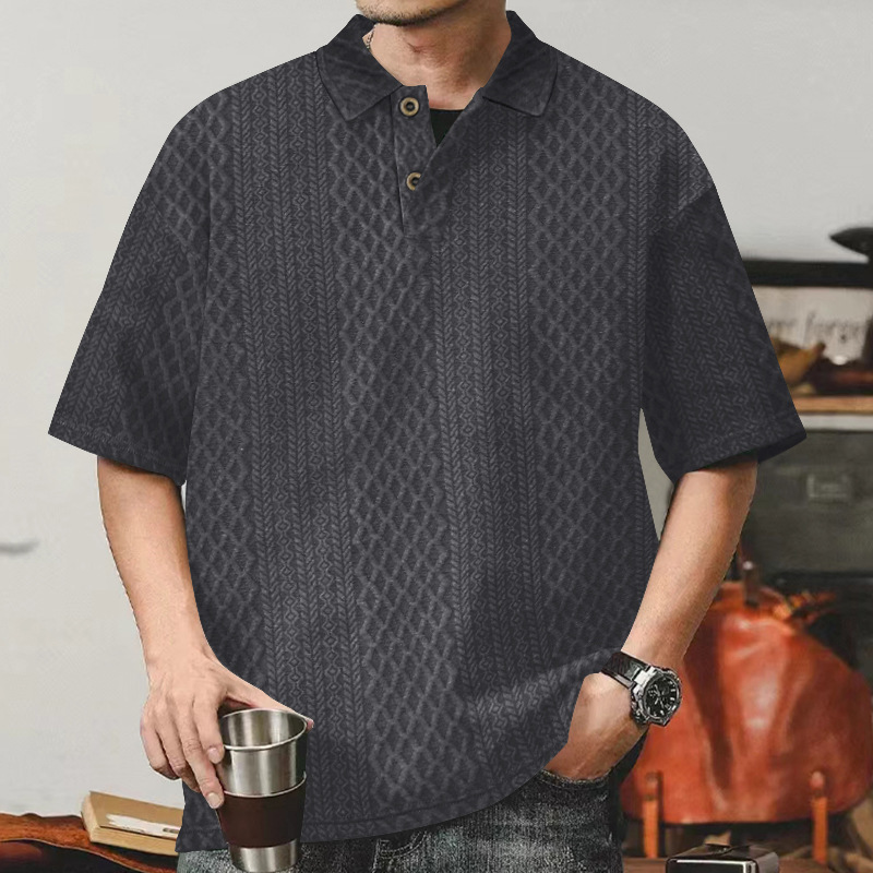 2024 국경 간 반팔 폴로 셔츠 남성 여름 니트 자카드 질감 오버 사이즈 느슨한 옷깃 단색 티셔츠스토어 가기