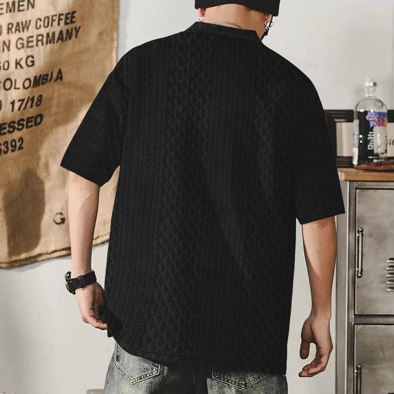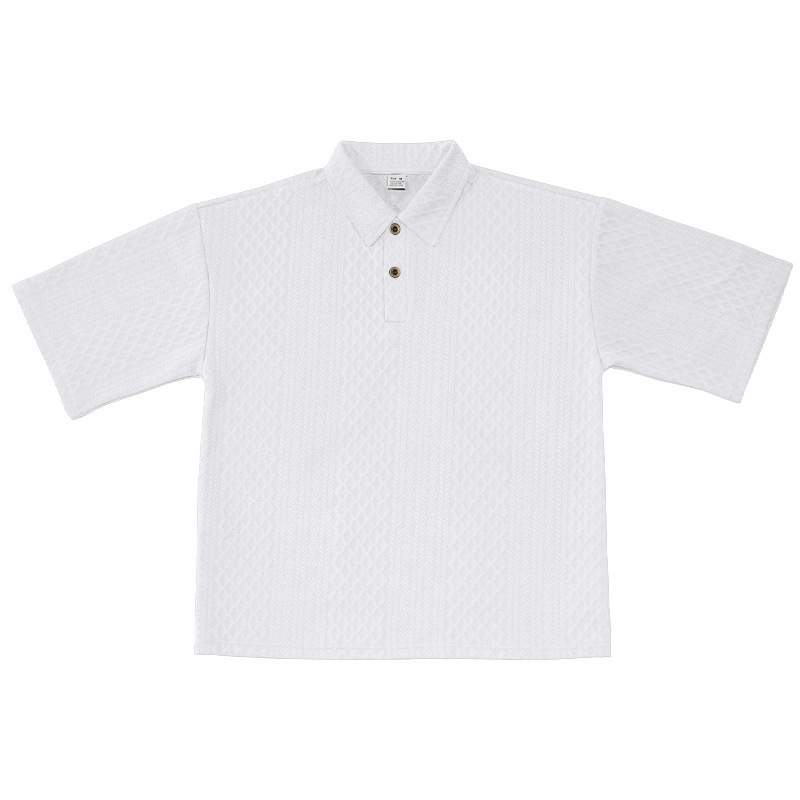 2024 국경 간 반팔 폴로 셔츠 남성 여름 니트 자카드 질감 오버 사이즈 느슨한 옷깃 단색 티셔츠