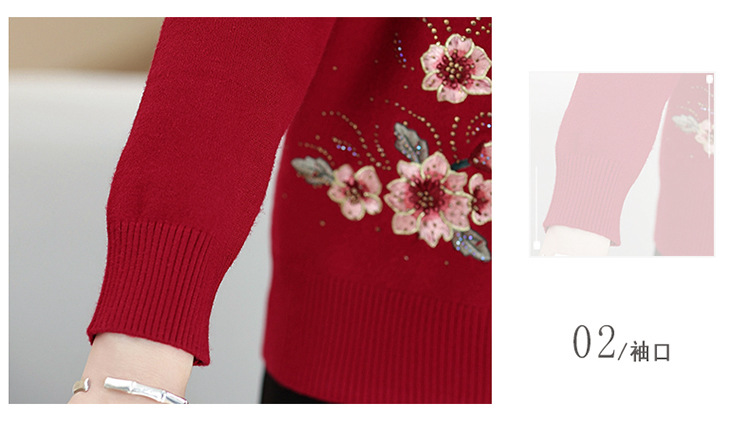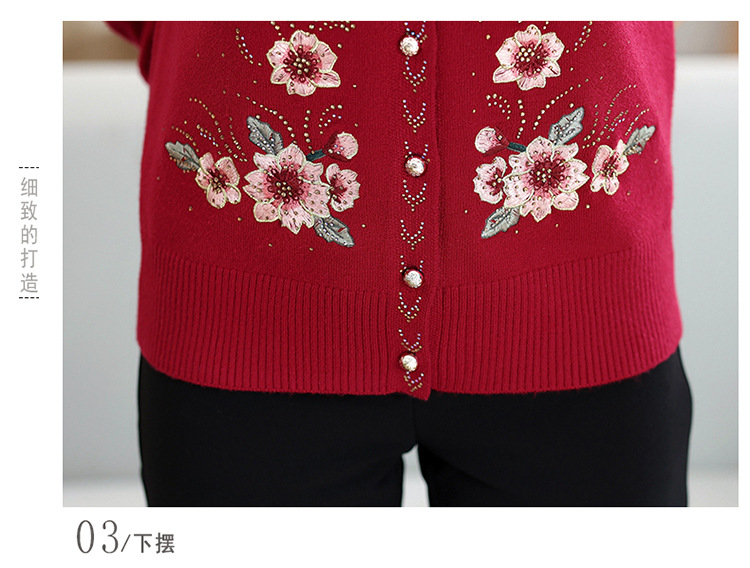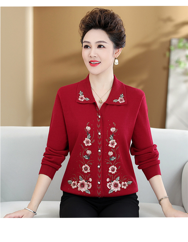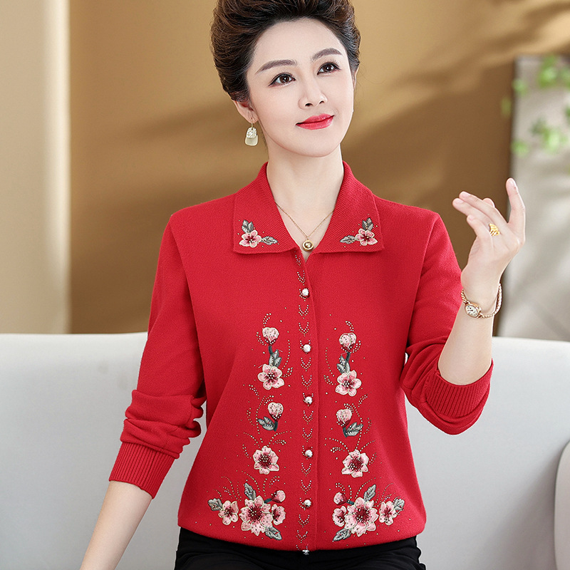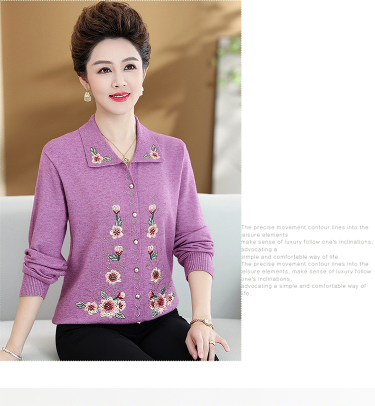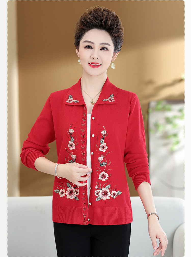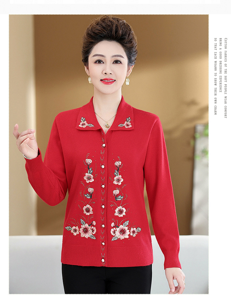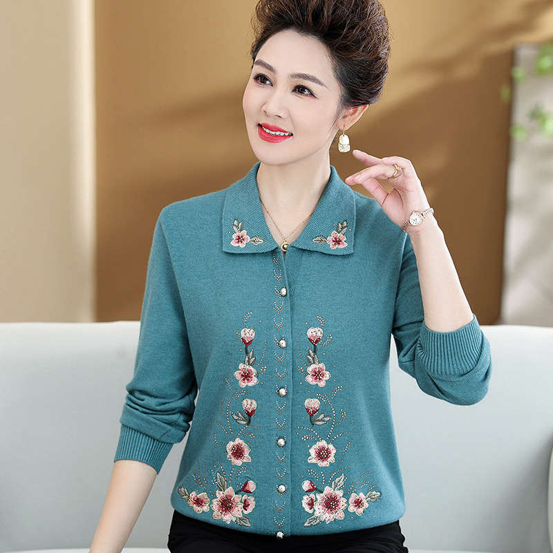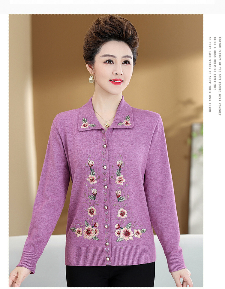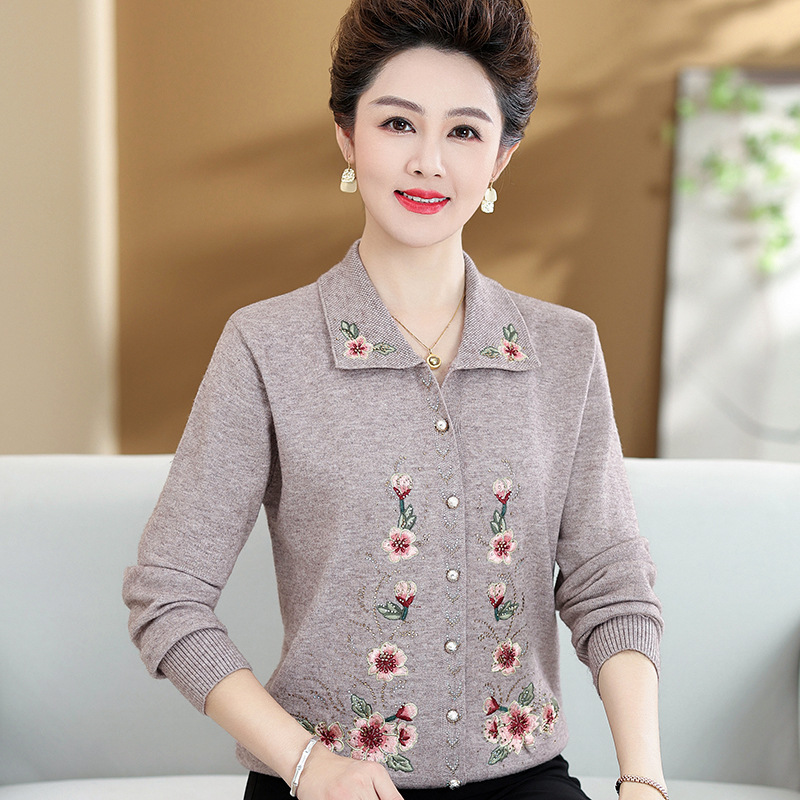 엄마 봄 옷깃 스웨터 카디건 코트 서양식 와이드 레이디 수 놓은 중년 및 노인 여성의 봄과 가을 스웨터