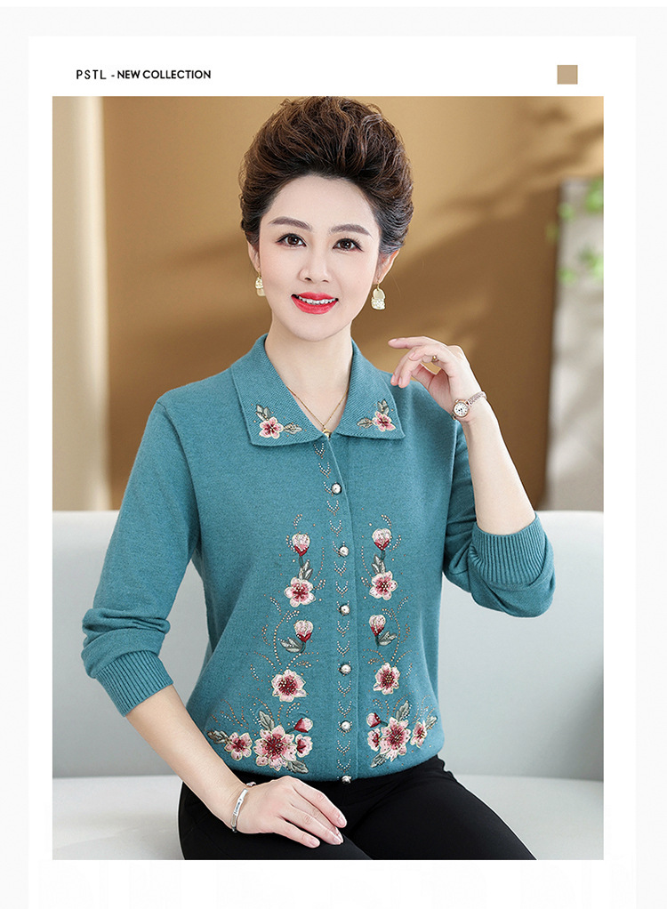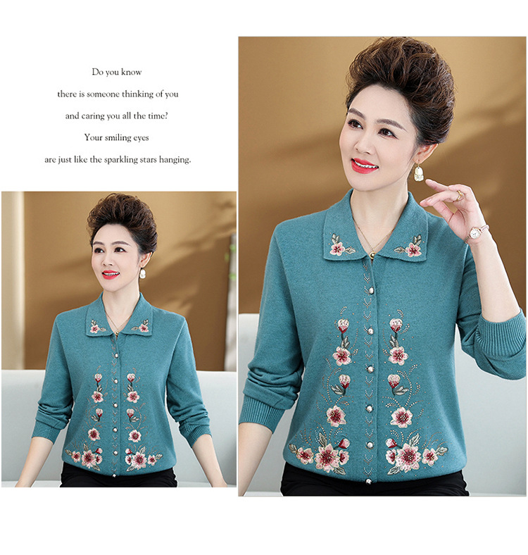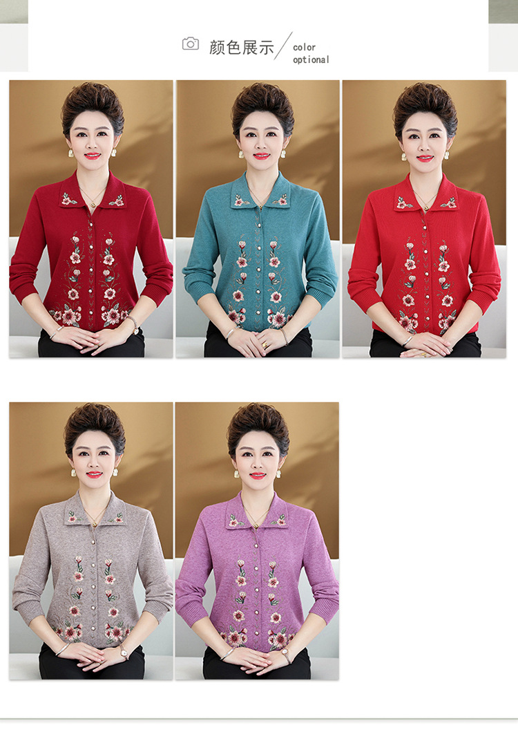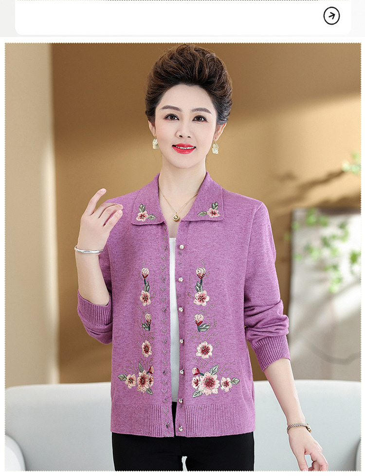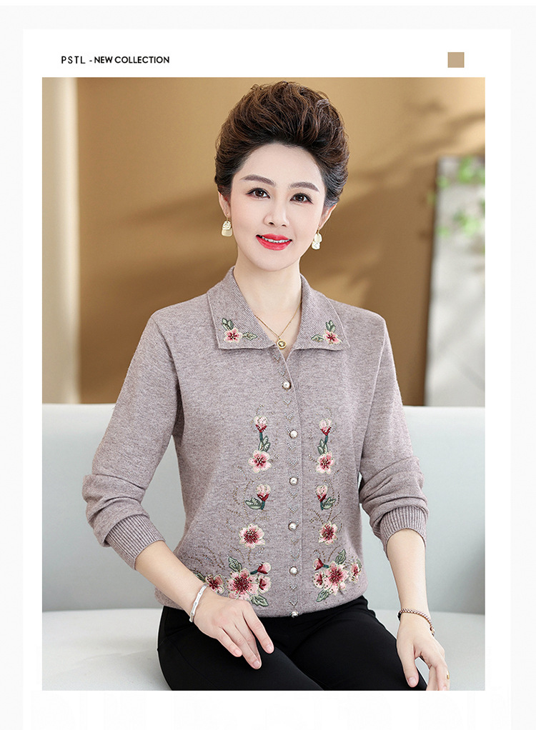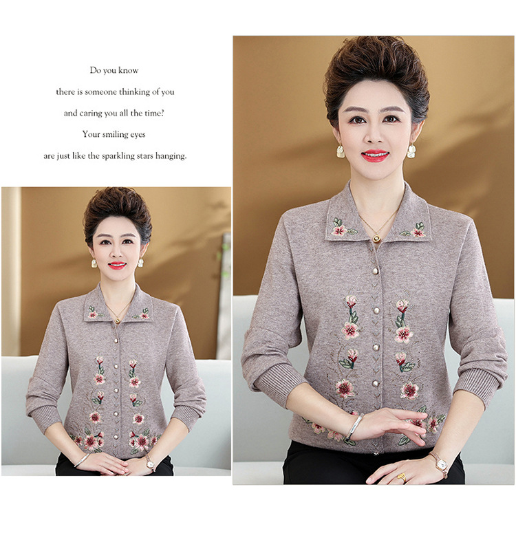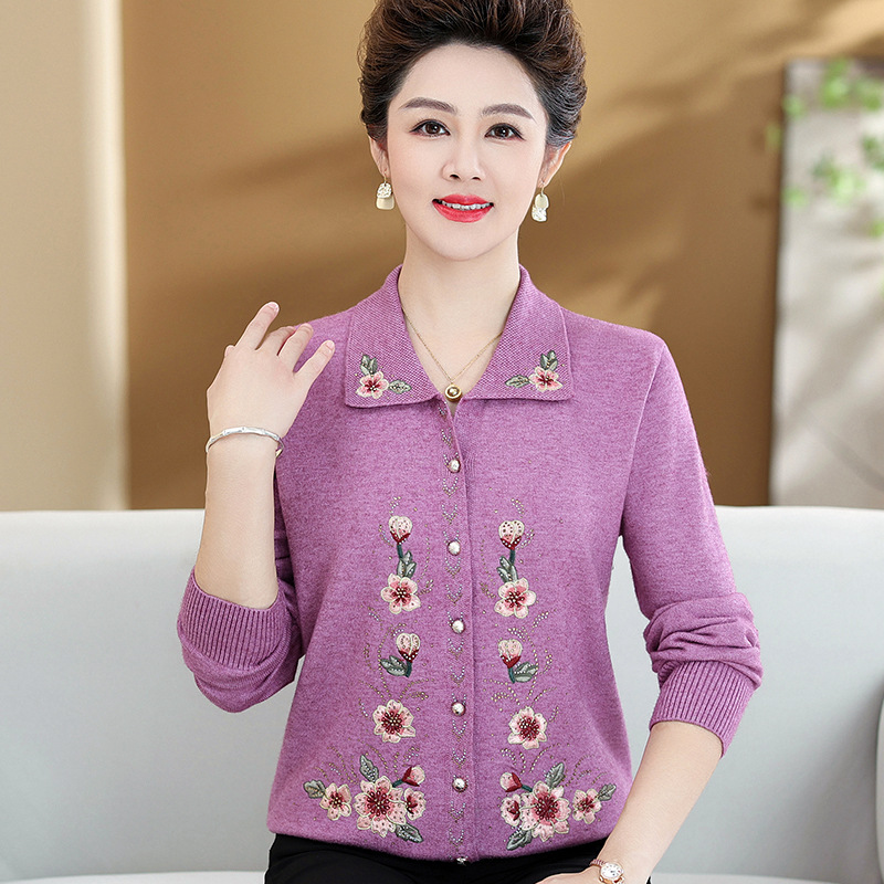 엄마 봄 옷깃 스웨터 카디건 코트 서양식 와이드 레이디 수 놓은 중년 및 노인 여성의 봄과 가을 스웨터스토어 가기