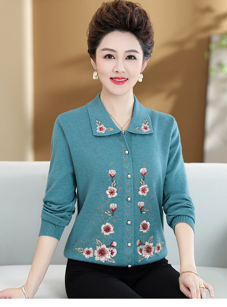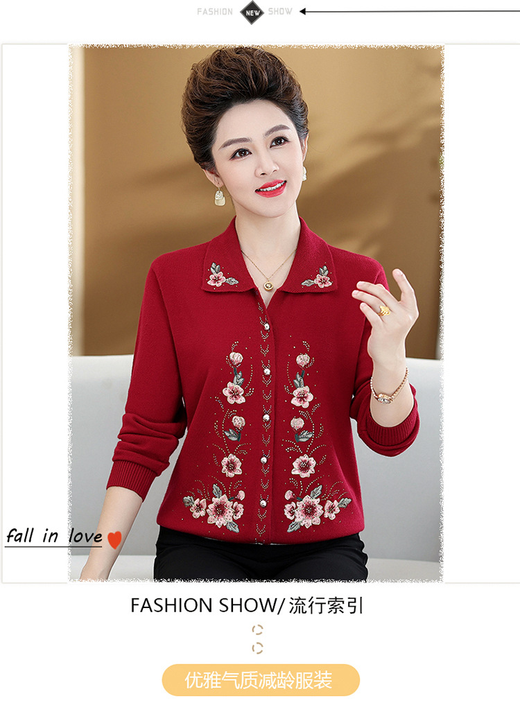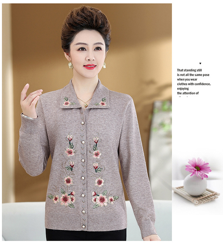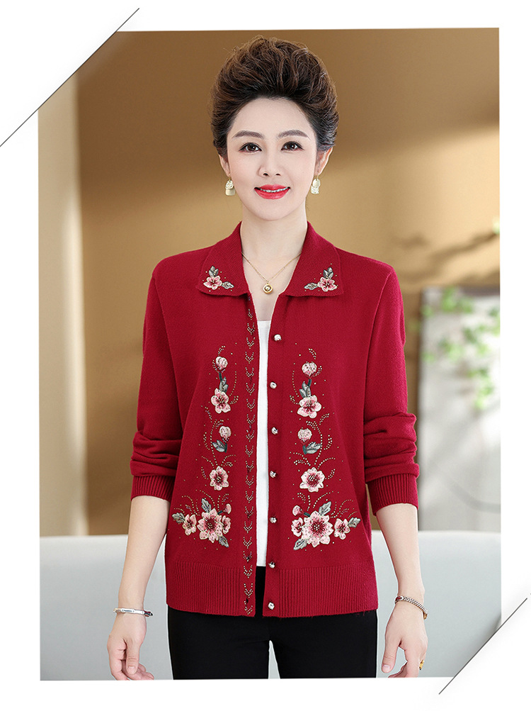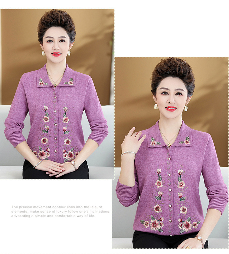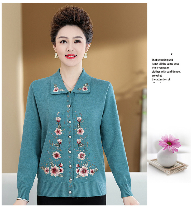 엄마 봄 옷깃 스웨터 카디건 코트 서양식 와이드 레이디 수 놓은 중년 및 노인 여성의 봄과 가을 스웨터스토어 가기