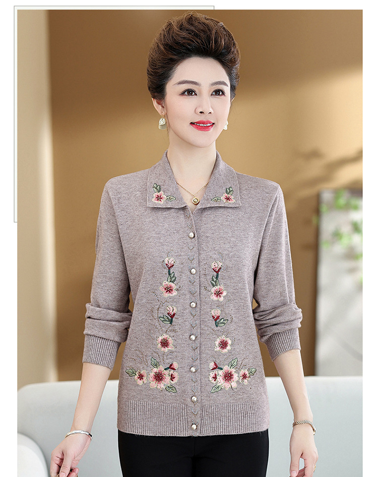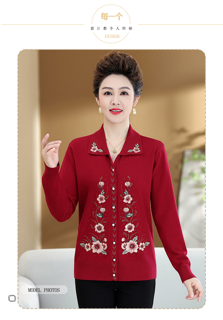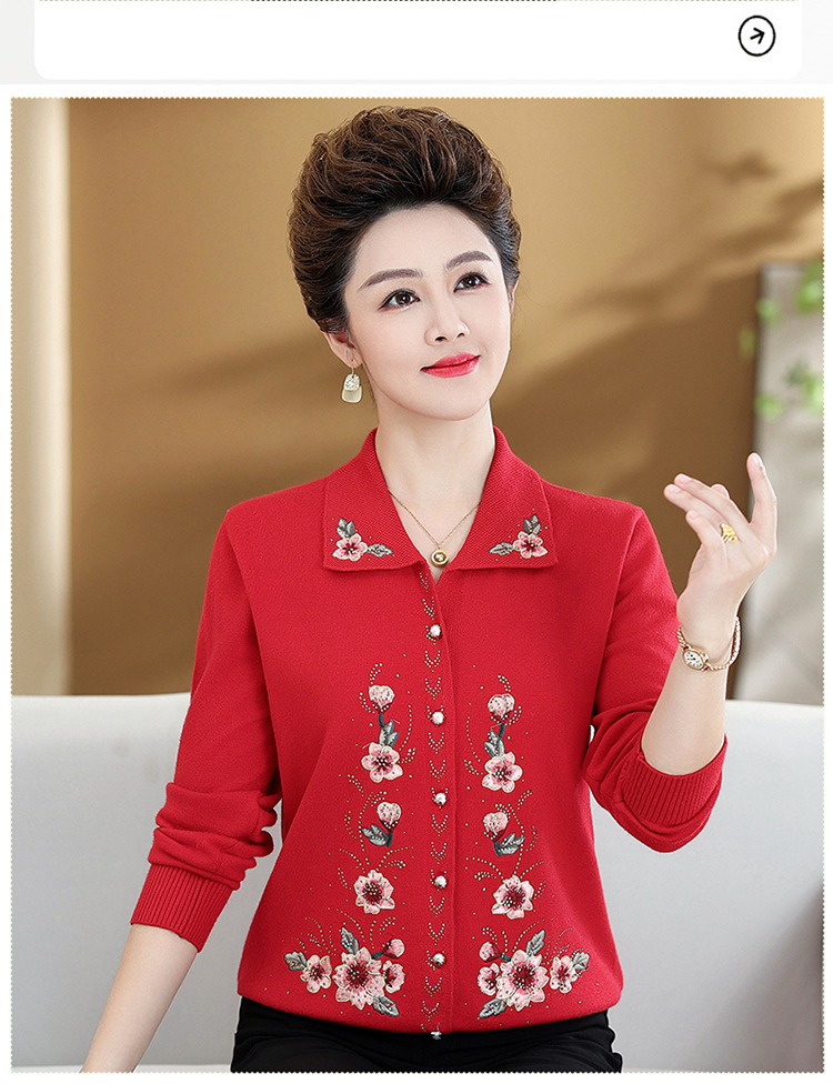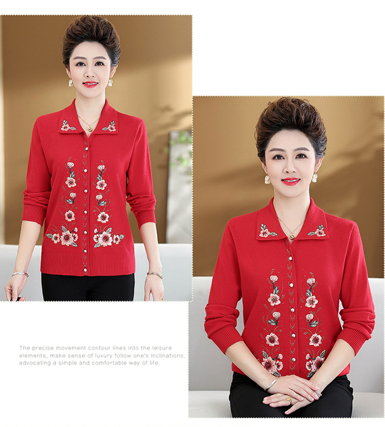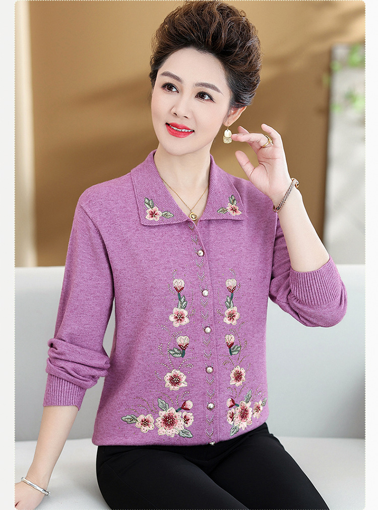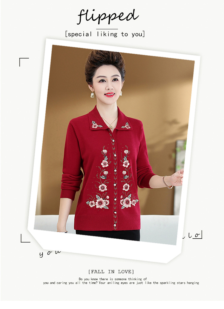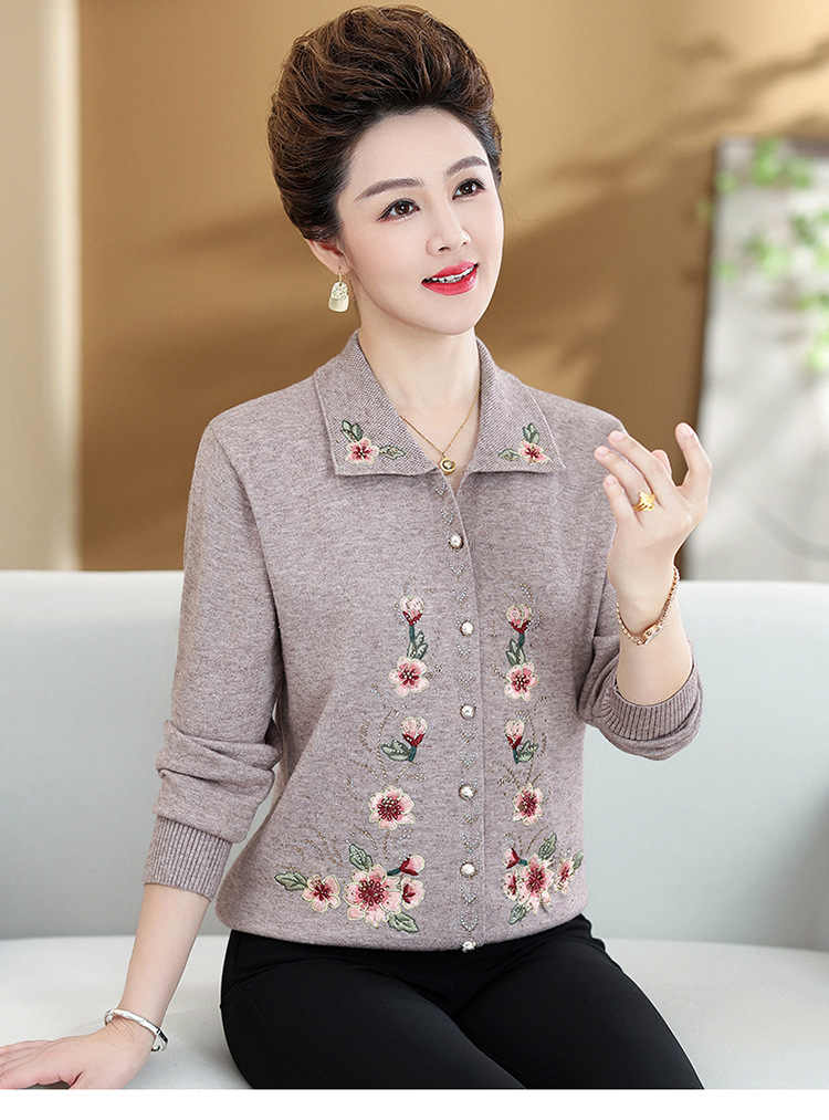 엄마 봄 옷깃 스웨터 카디건 코트 서양식 와이드 레이디 수 놓은 중년 및 노인 여성의 봄과 가을 스웨터스토어 가기