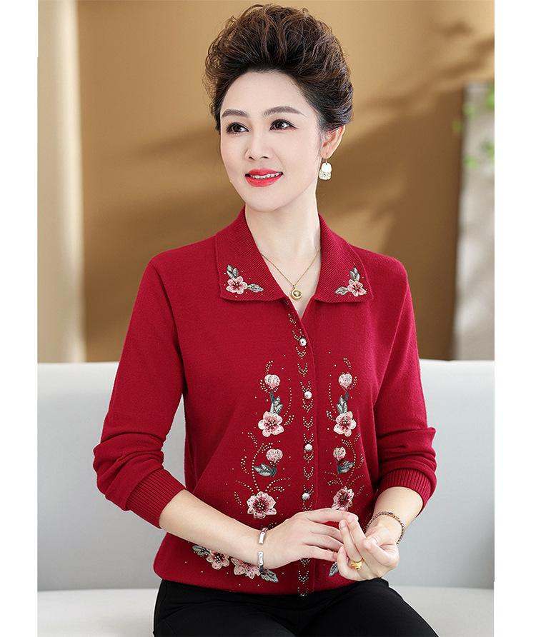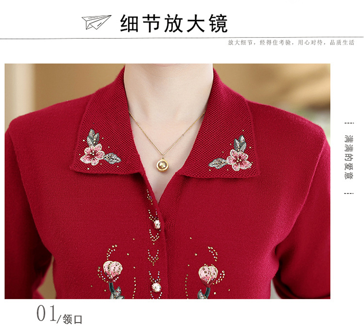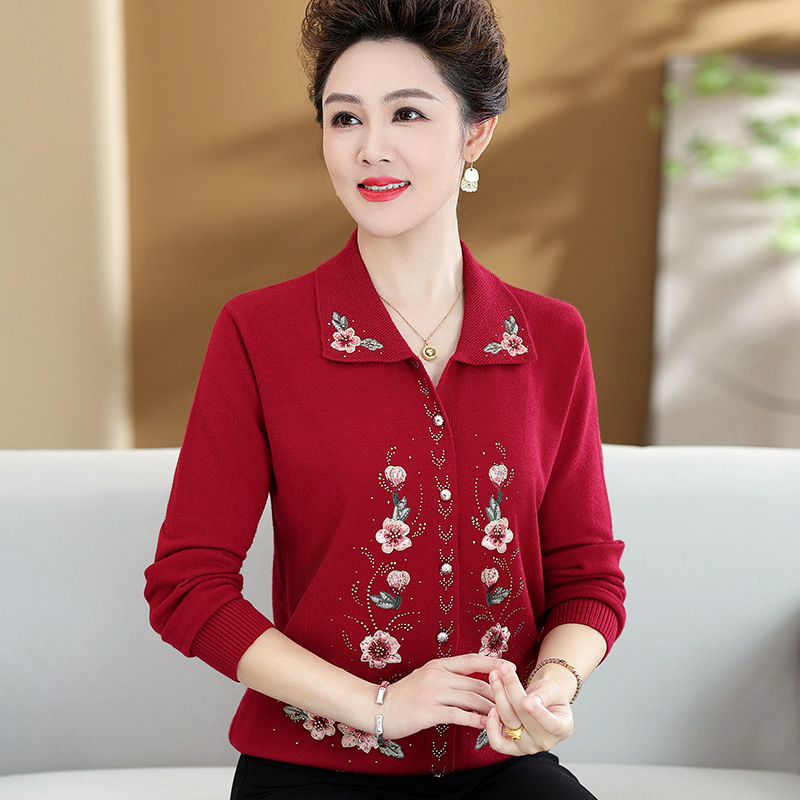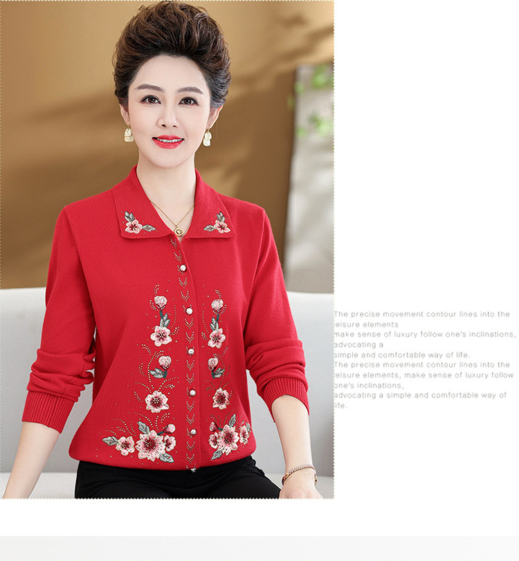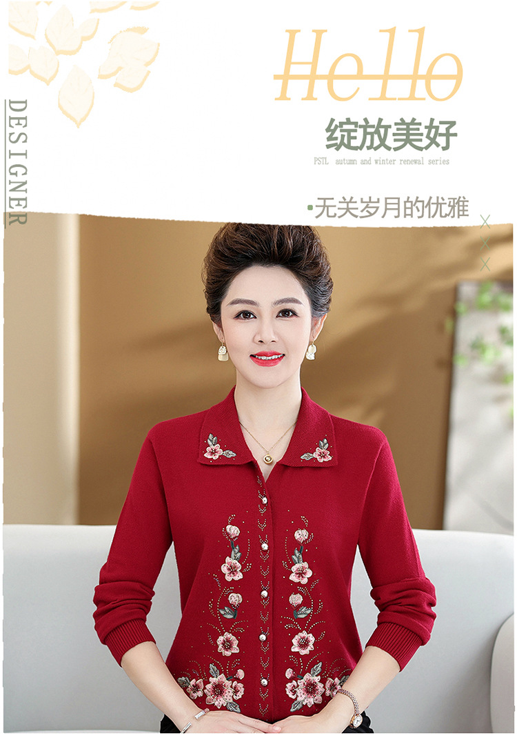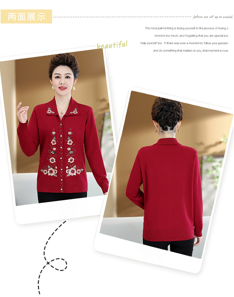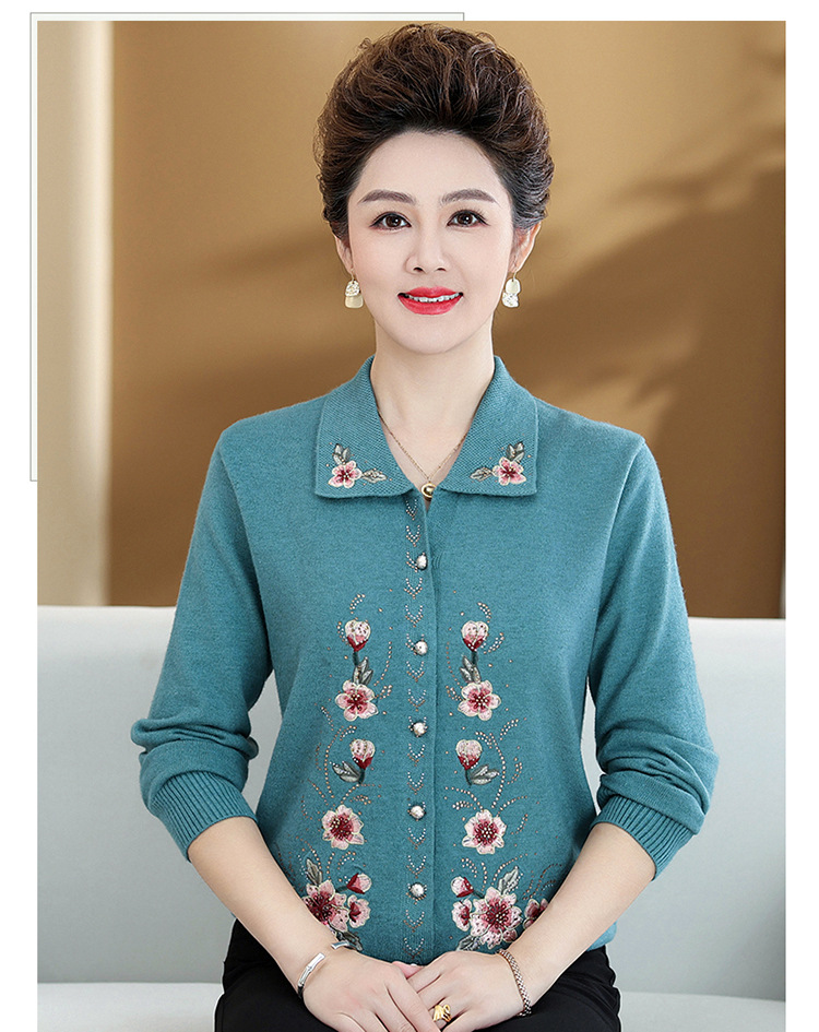 엄마 봄 옷깃 스웨터 카디건 코트 서양식 와이드 레이디 수 놓은 중년 및 노인 여성의 봄과 가을 스웨터스토어 가기