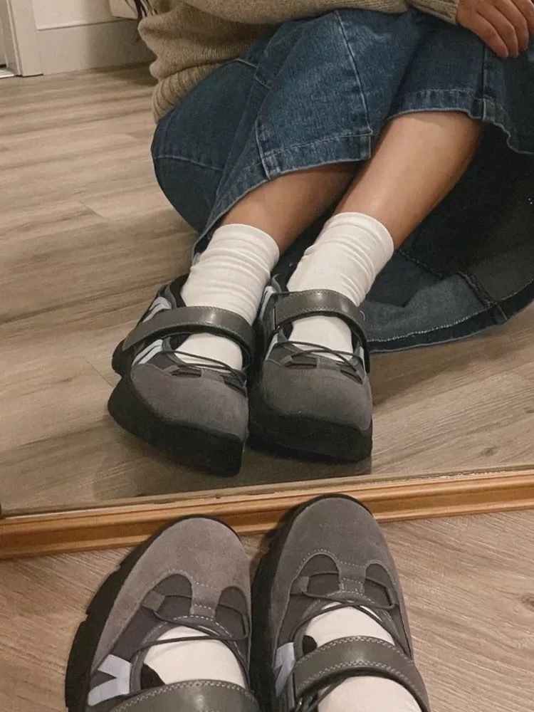 【해외배송 전용】한국 스타일 여성용 니치 메리제인 슈즈 2026년 신상품 다용도 레트로 발레 캐주얼 운동화스토어 가기