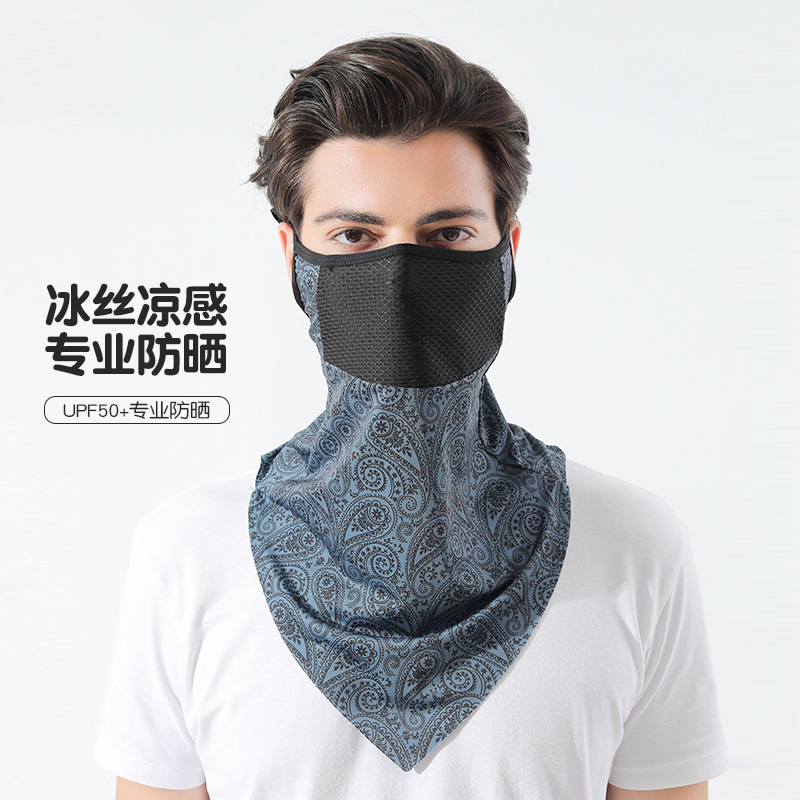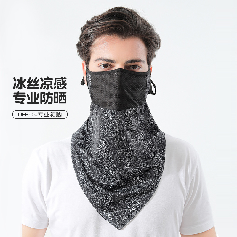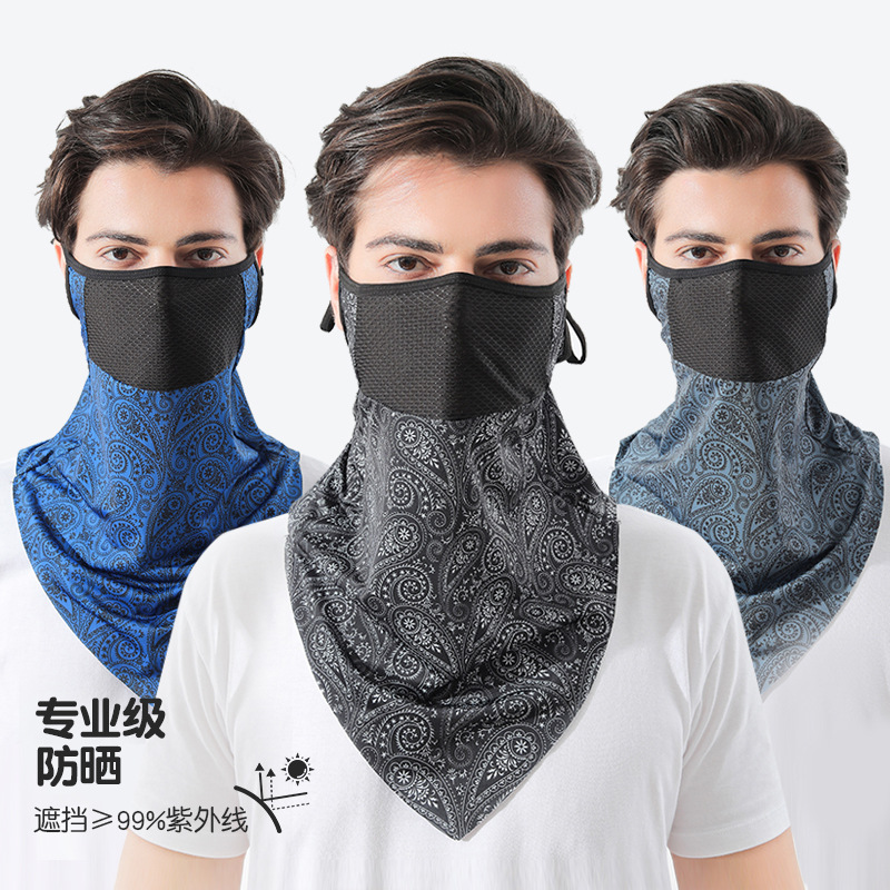 여름 얼음 실크 귀 매달려 선 스크린 마스크 커버 전체 얼굴 수건 통기성 자외선 차단 마스크 승마 장비 스카프 커버