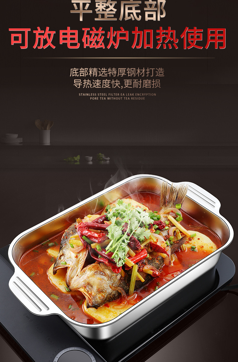 스테인레스 스틸 구운 어판 직사각형 가정용 오븐 딥 플레이트 유도 쿠커 특수 두꺼운 구운 다기능 플레이트스토어 가기