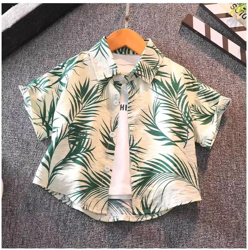 0-5 세 어린이 반팔 세트 소년 여름 해변 캐주얼 셔츠 옷 아기 홍콩 스타일 소년 반바지스토어 가기