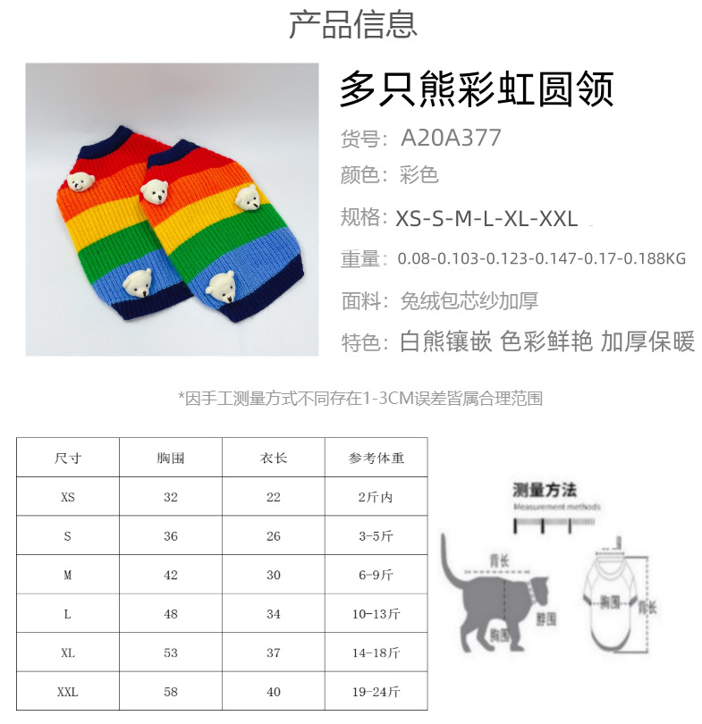애완 동물 가을과 겨울 두꺼운 따뜻한 니트 스웨터 개 테디 파두 쓴 곰 고양이 중소 색 옷스토어 가기