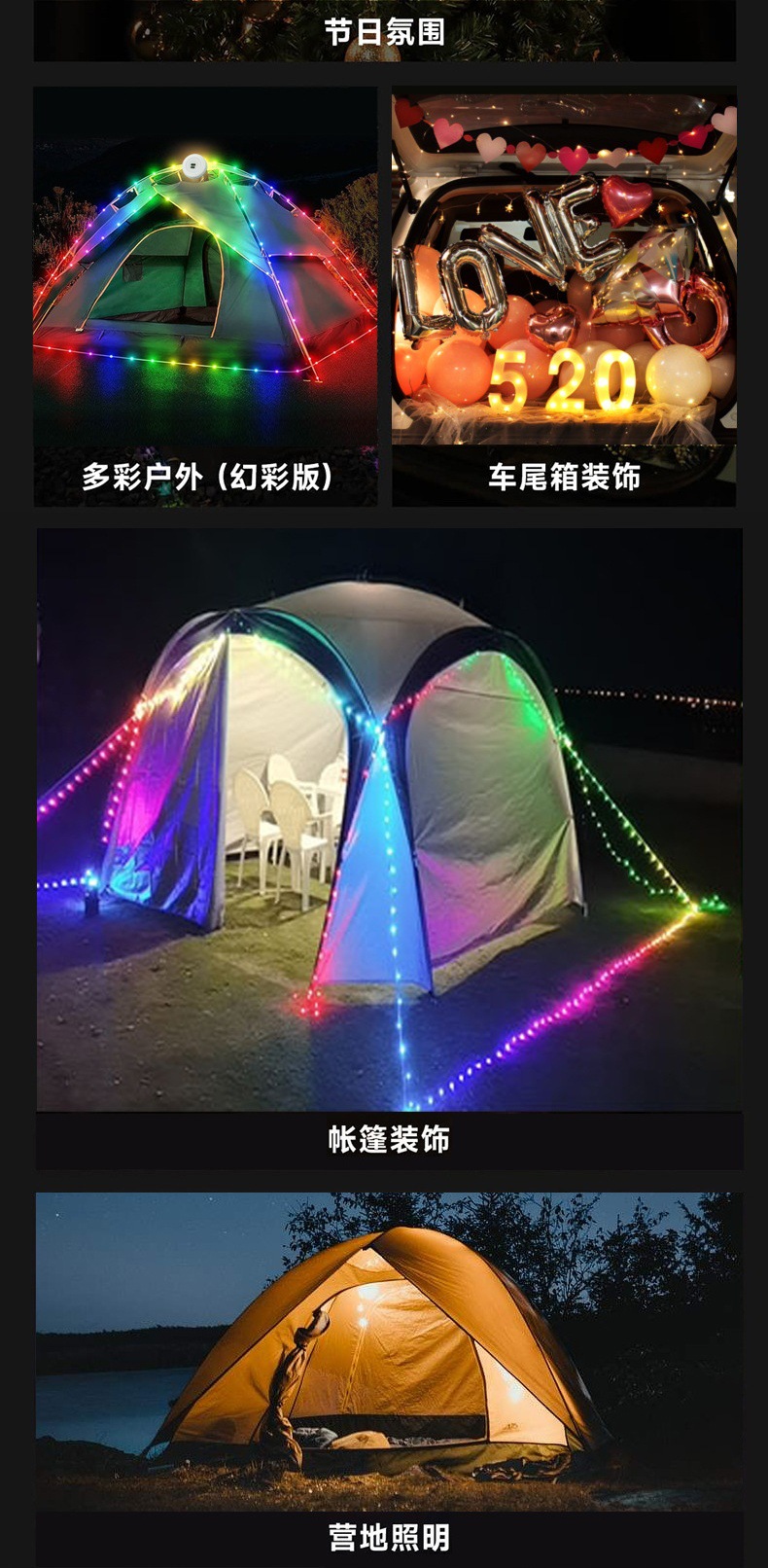 LED 야외 캠핑 조명 분위기 다채로운 조명 캐노피 캠프 파티 장식 텐트 라이트 충전 캠핑 라이트 스트링스토어 가기