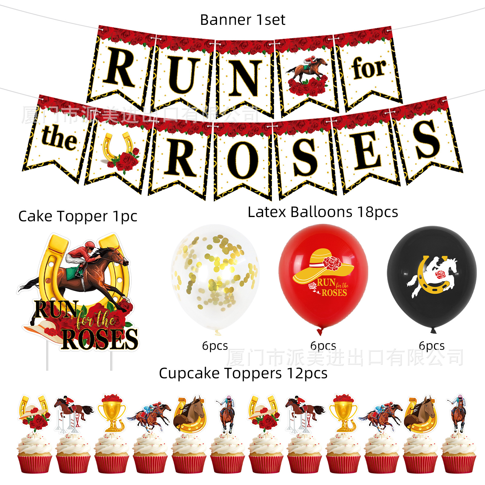 套装1包括:1条拉旗+1个大插牌+12个小插旗+18个气球
