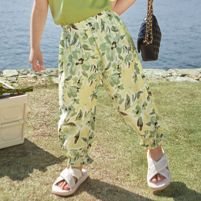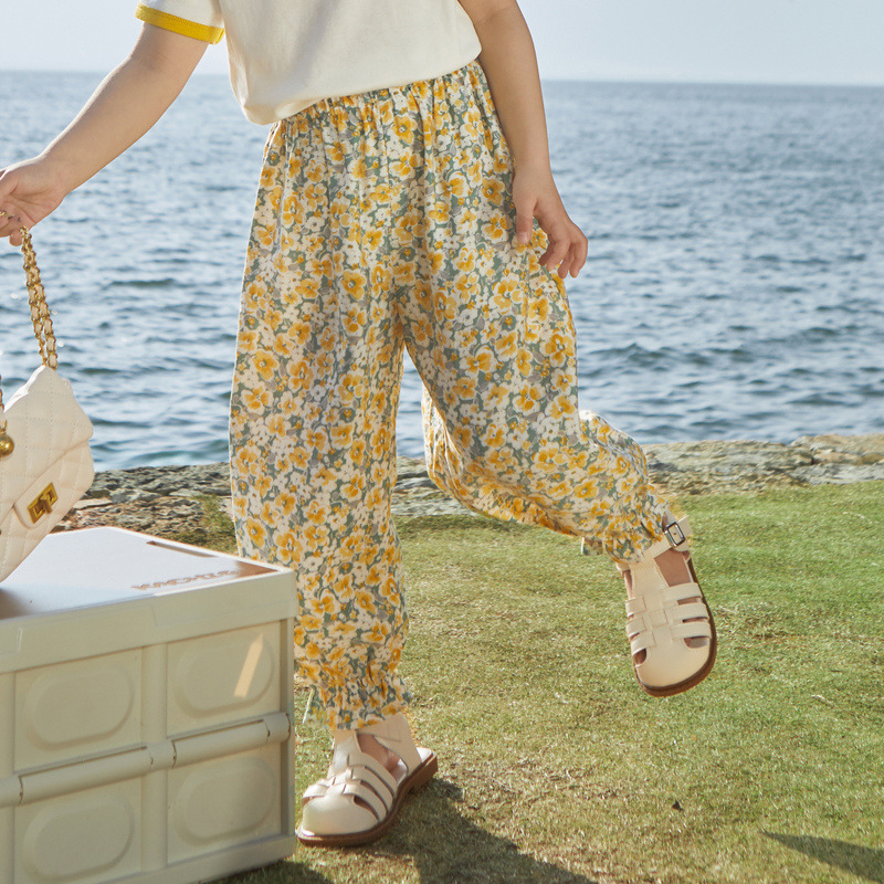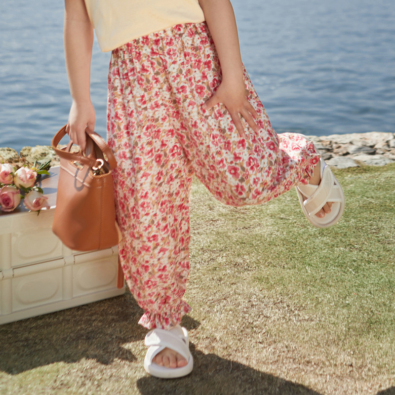 [클리어아웃 모델은 환불 및 교환이 불가능합니다.] 어린이 여름 얇은 모기 방지 바지 목가적 스타일 꽃무늬 블루머 아이스 실크 레깅스