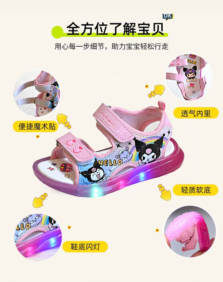 2024 새로운 어린이 빛-부드러운 바닥에 공주 귀여운 해변 신발 아기 유아 신발 소녀의 빛나는 샌들 일본 스타일스토어 가기