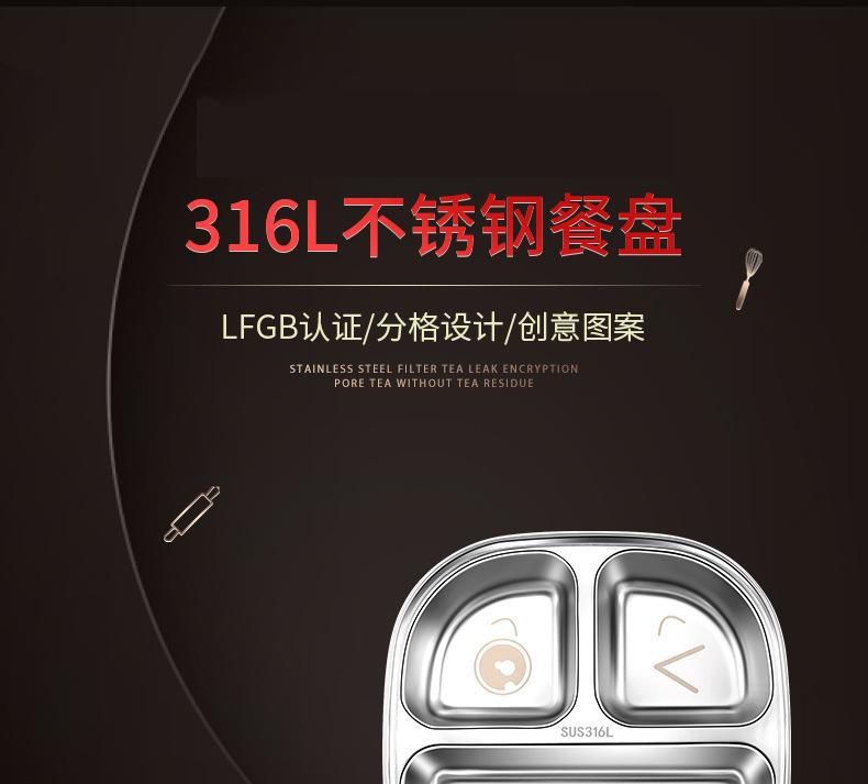 316 스테인레스 스틸 어린이 디너 플레이트 격실 아기 소년과 소녀 어린이 디너 플레이트 유아 정원 특수 식기 라이스 그릇