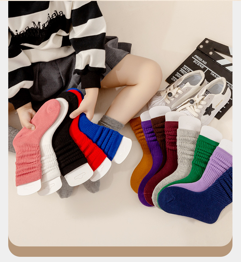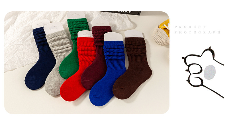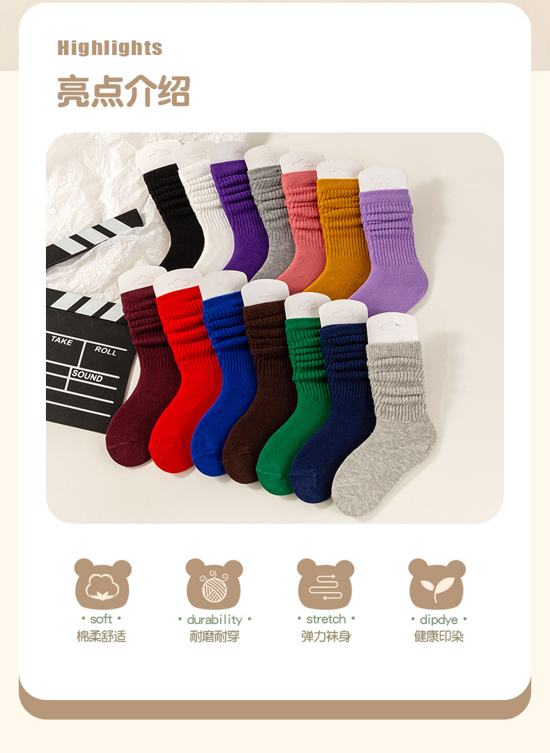 2025 어린이 가을 양말 새로운 아기 양말 솔리드 컬러 중반 송아지 양말 더미 양말 아기 소년과 소녀 순수 코튼 양말스토어 가기