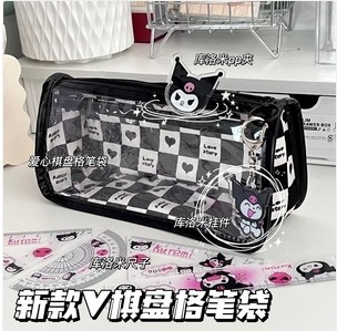 투명한 체스 판 격자 무늬 연필 케이스 문구 가방 높은 모양의 대용량 간단한 학생 문구 가방 일본 초등학교 학생 연필 케이스스토어 가기