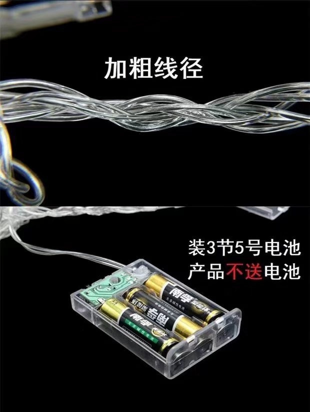 货 描:1米10灯电池盒只需2节5号电池(自备),2-10米3节常亮 闪 3节5号电池(自备)