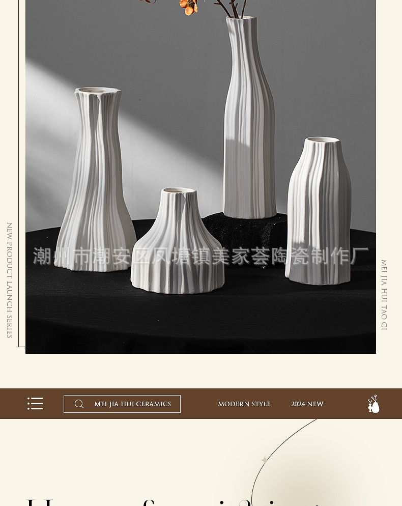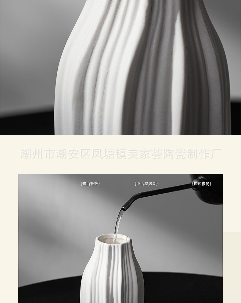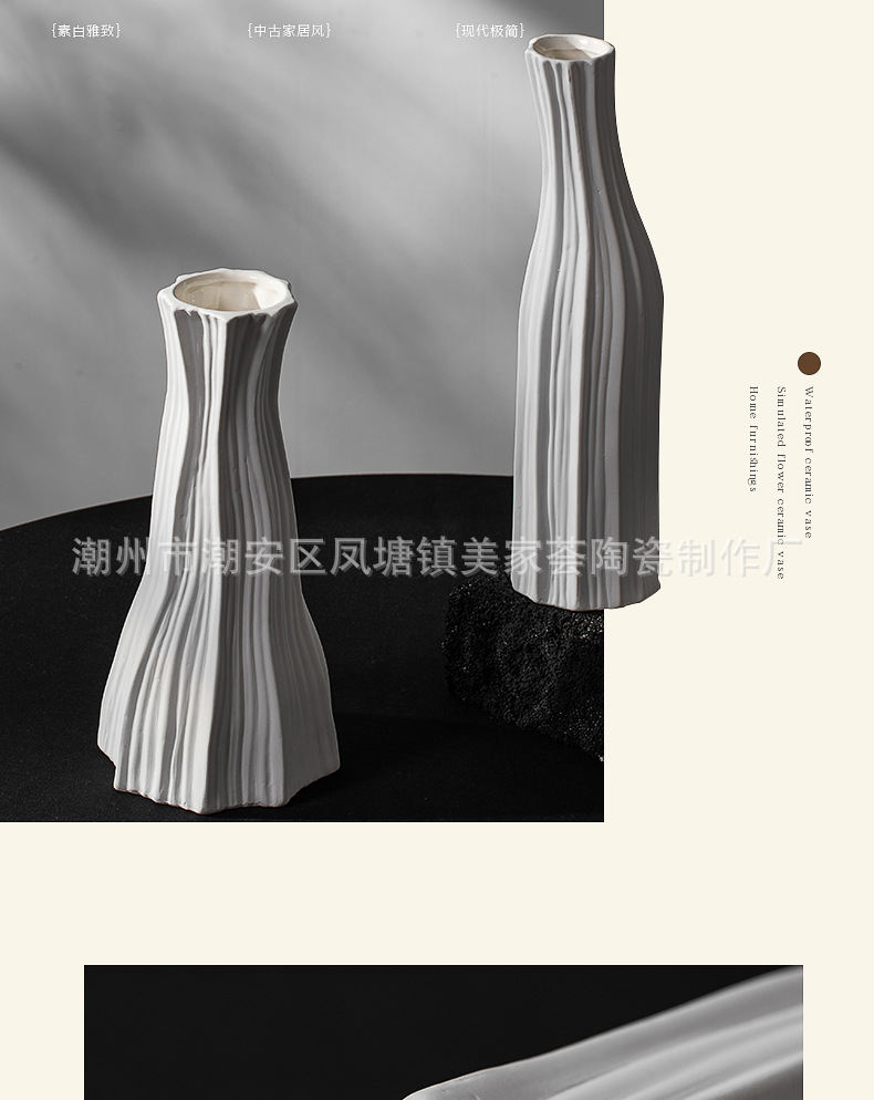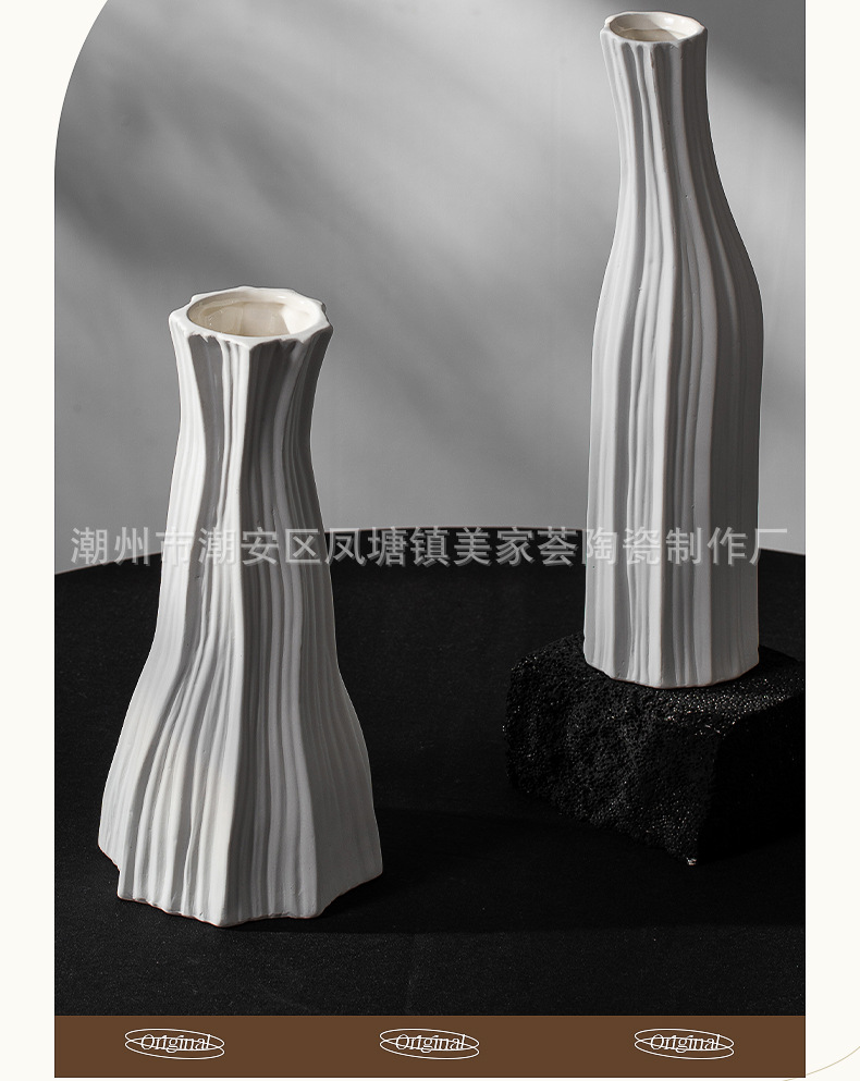 미니멀리스트 세로 줄무늬 세라믹 꽃병 말린 꽃 홀더 새로운 중국 수경 식탁 꽃병 거실 장식 장식품스토어 가기