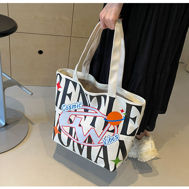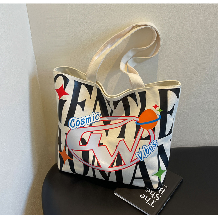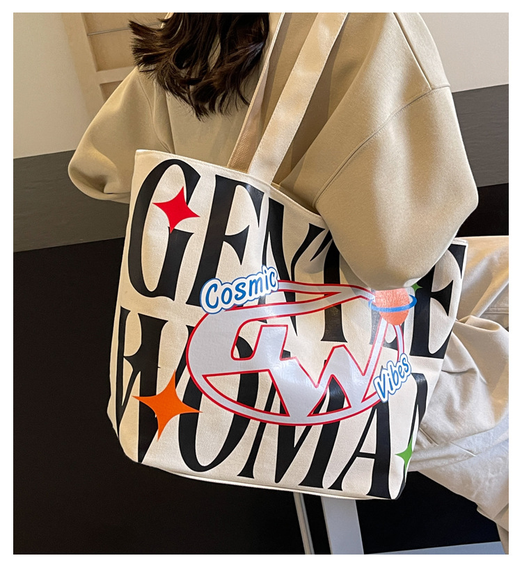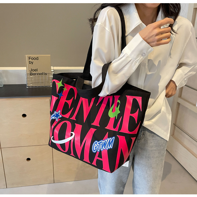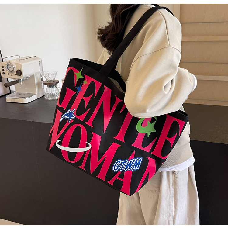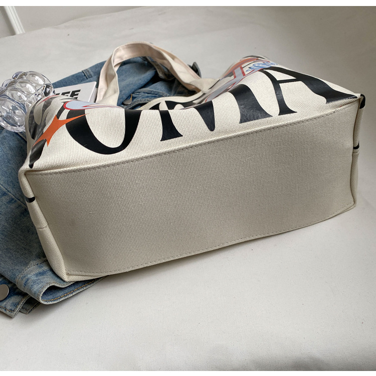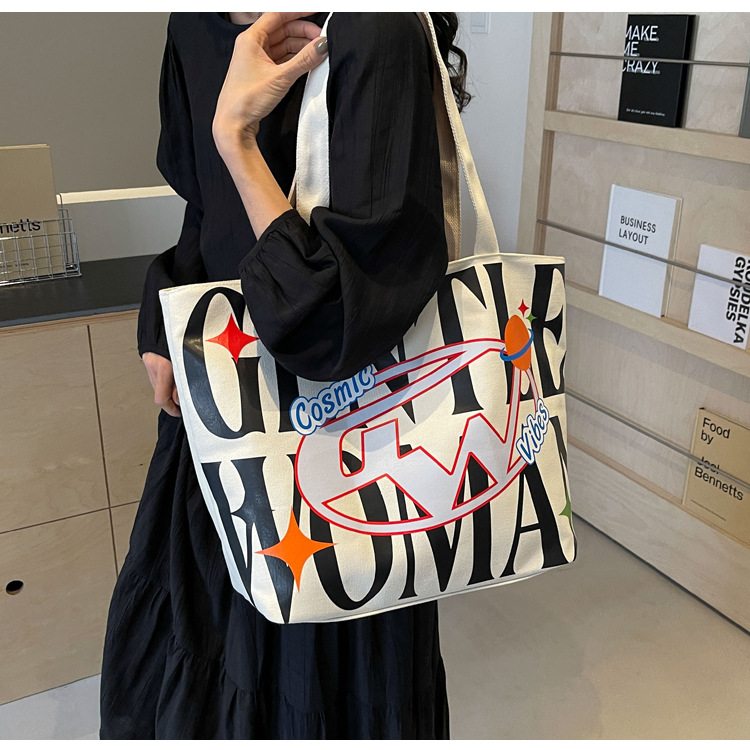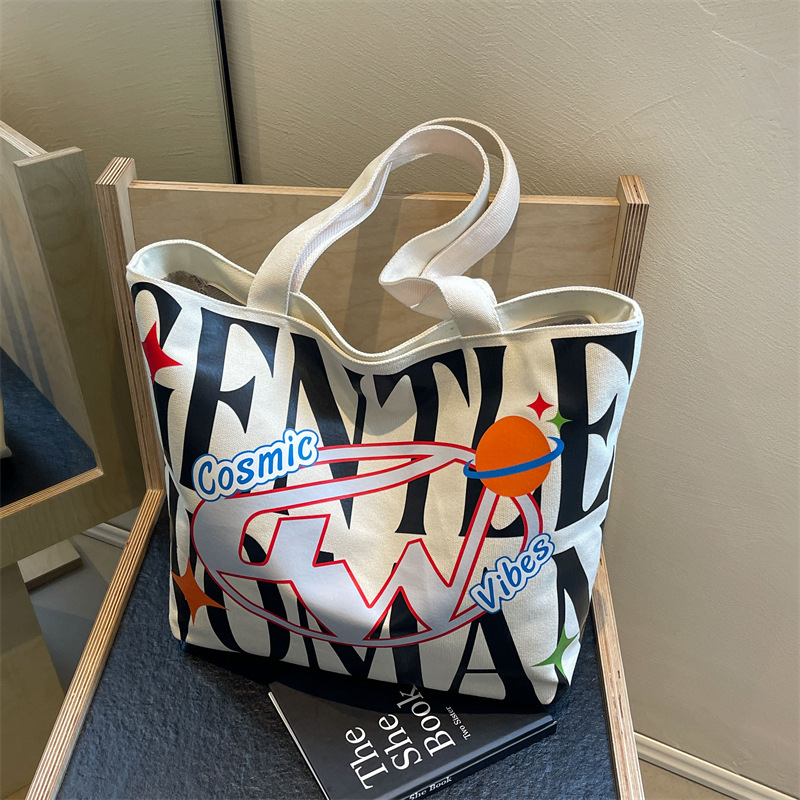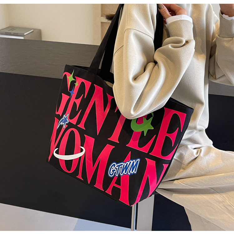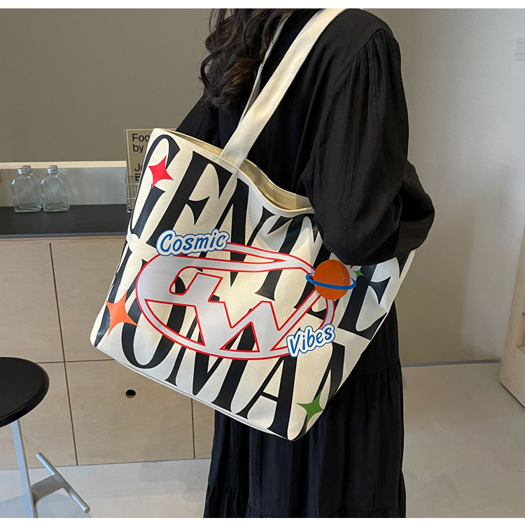 새로운 통근 캔버스 토트 백 2024 여성을위한 편지 대용량 가방 대학 학생 클래스 가방 겨드랑이 숄더백스토어 가기