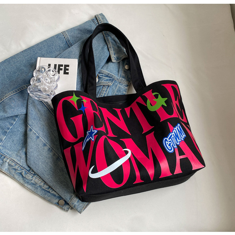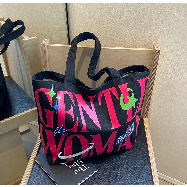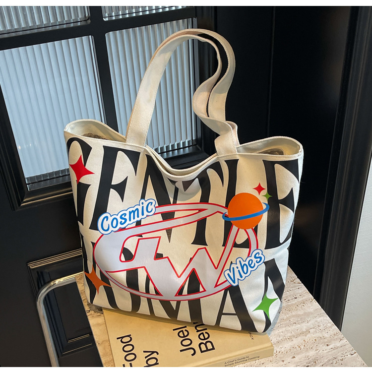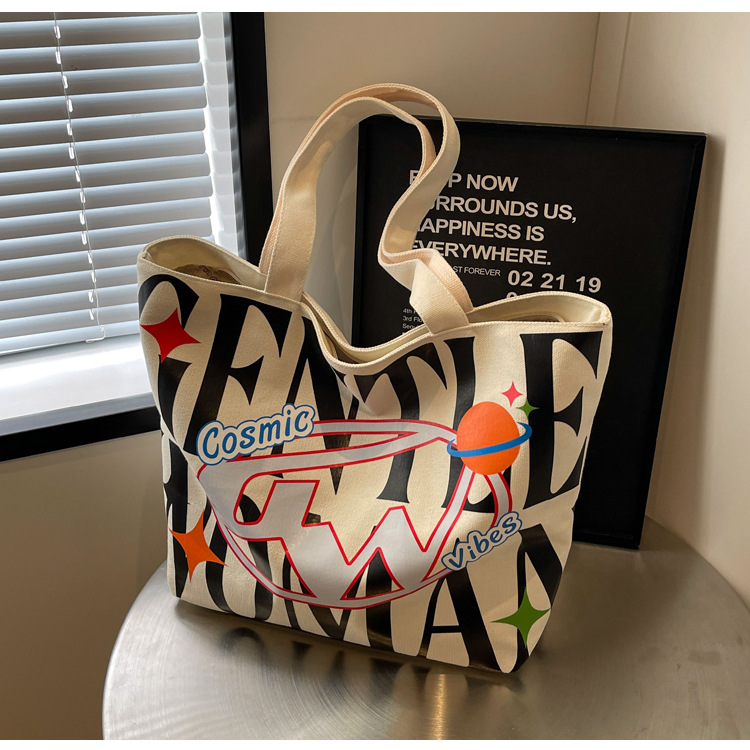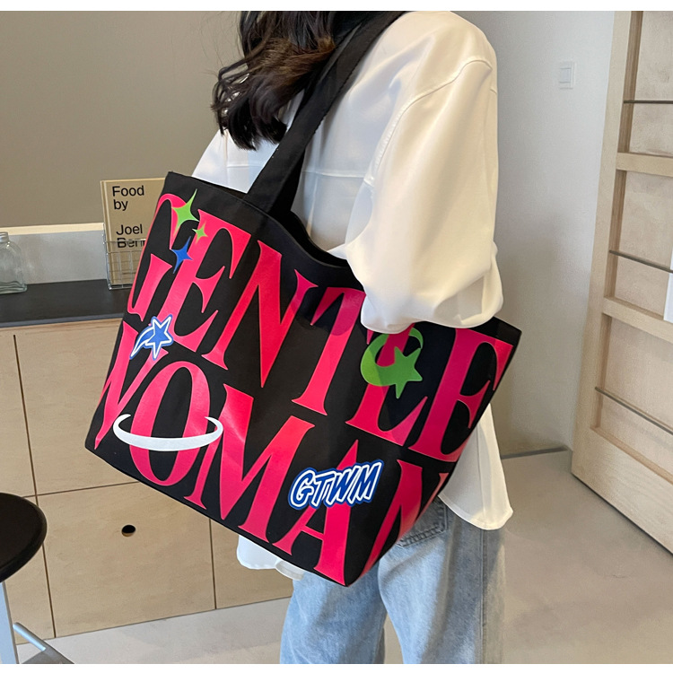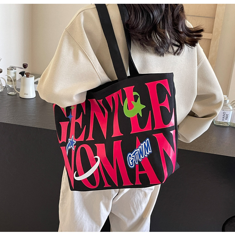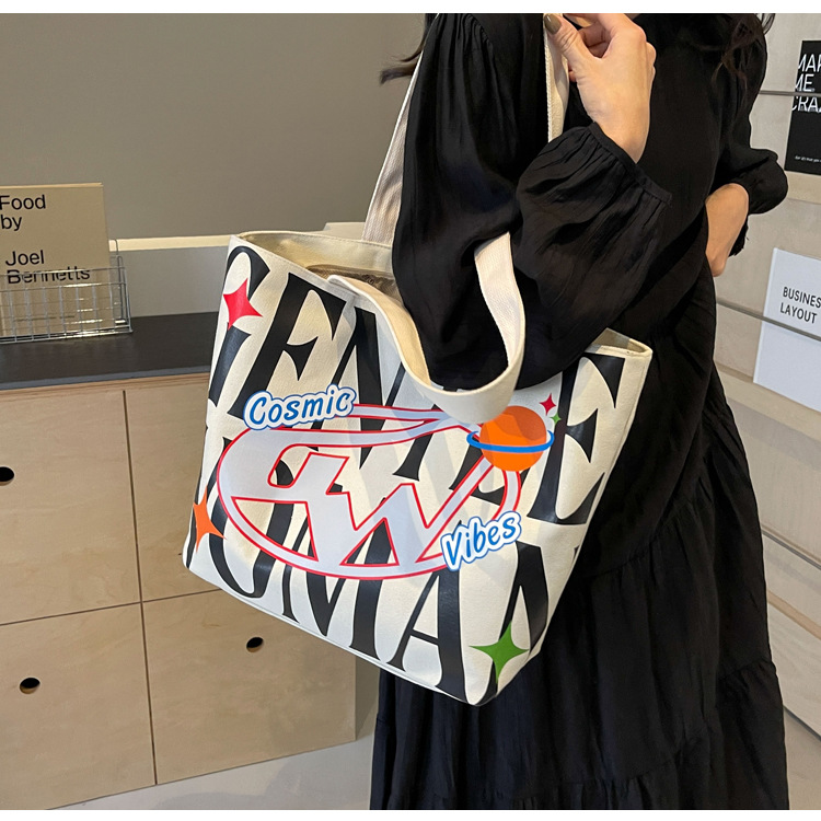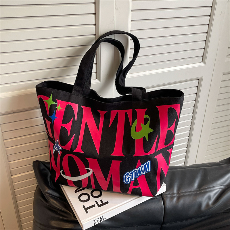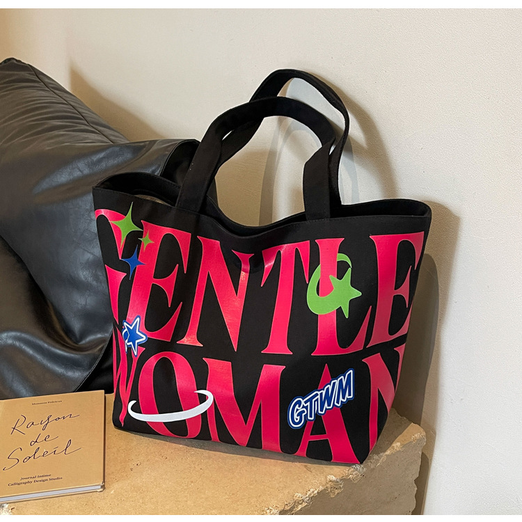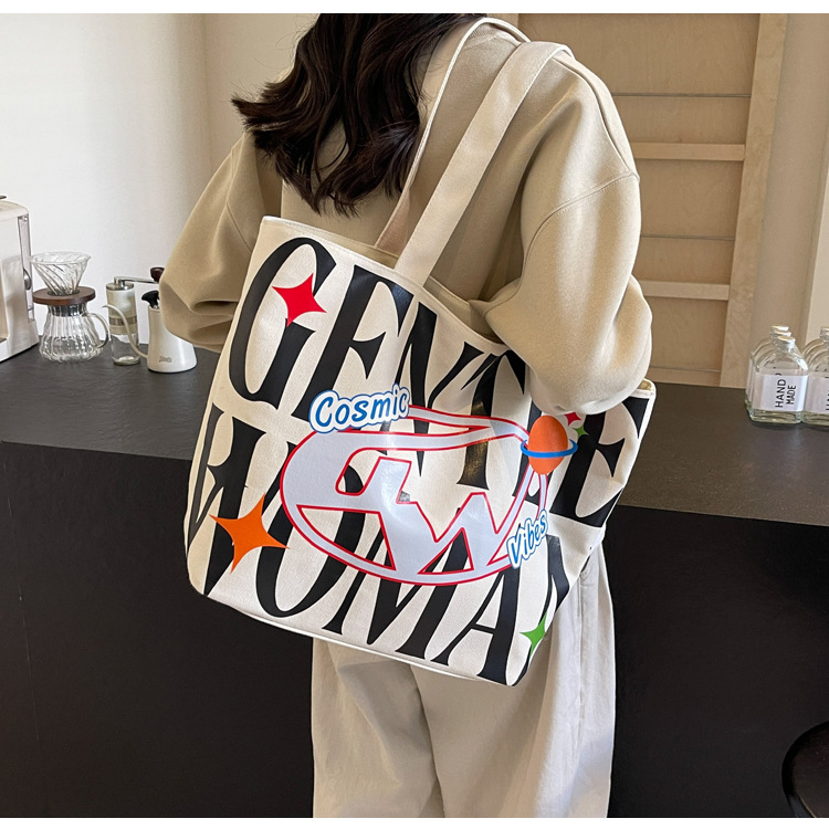 새로운 통근 캔버스 토트 백 2024 여성을위한 편지 대용량 가방 대학 학생 클래스 가방 겨드랑이 숄더백스토어 가기
