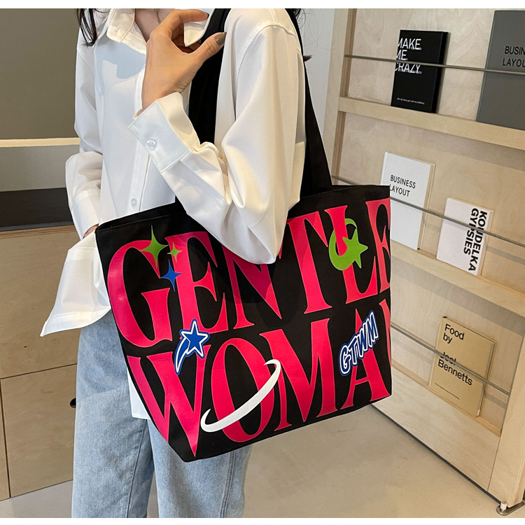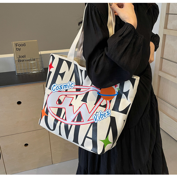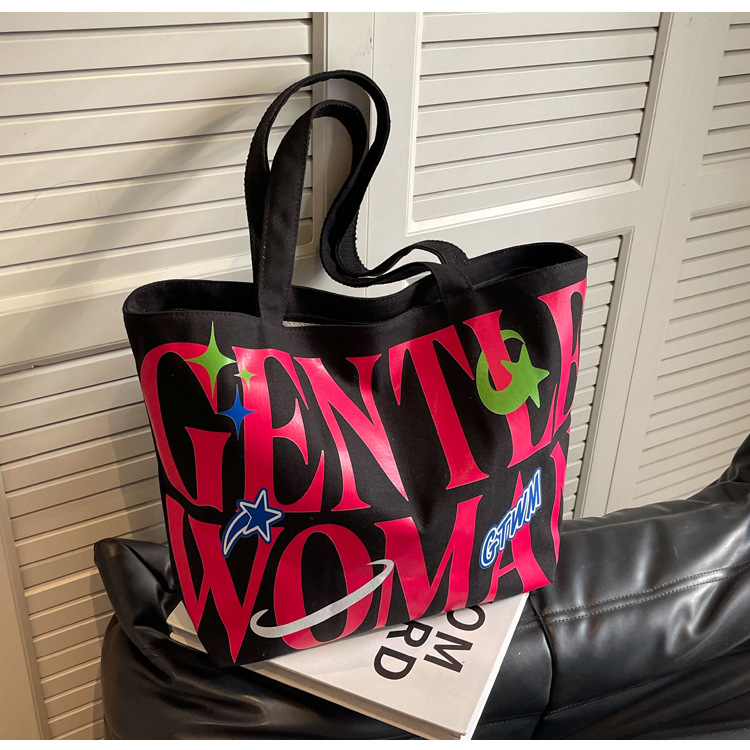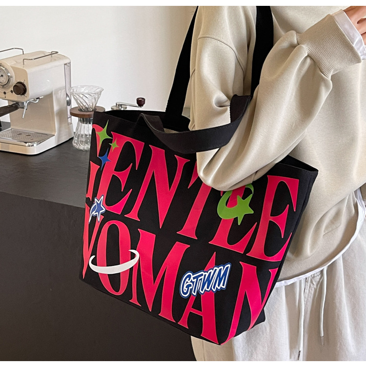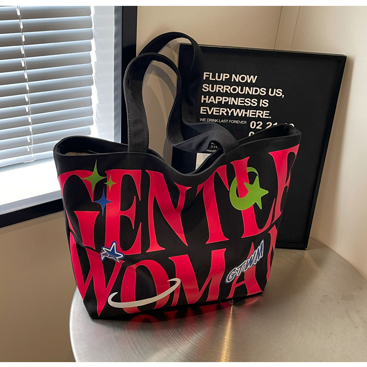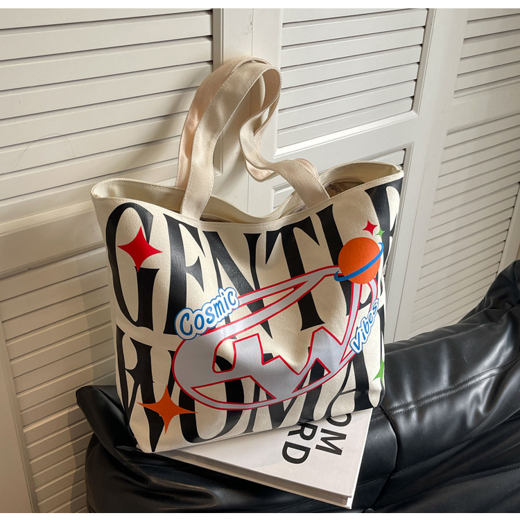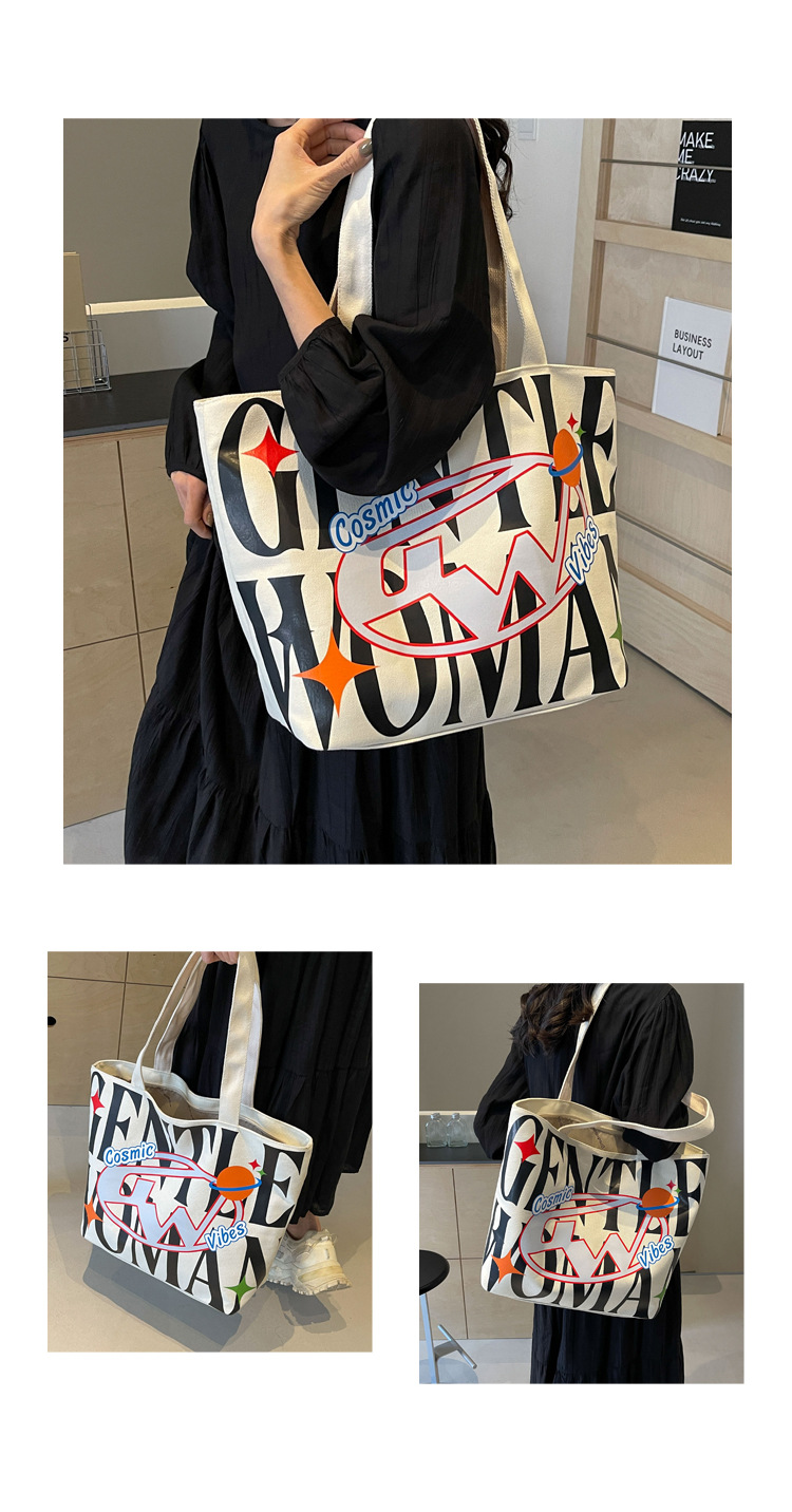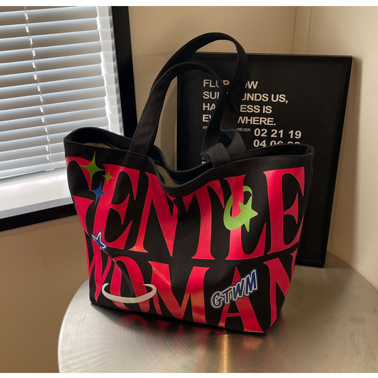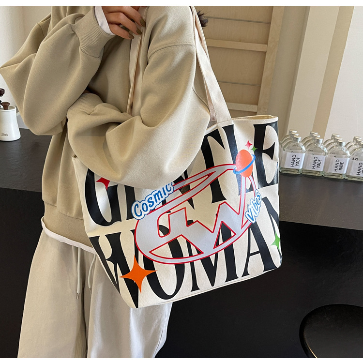 새로운 통근 캔버스 토트 백 2024 여성을위한 편지 대용량 가방 대학 학생 클래스 가방 겨드랑이 숄더백스토어 가기