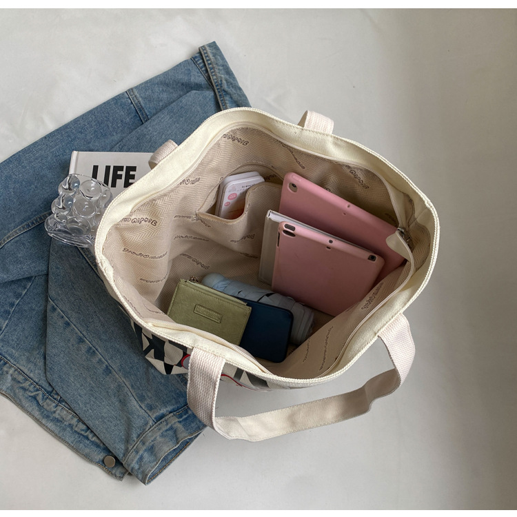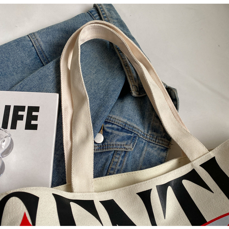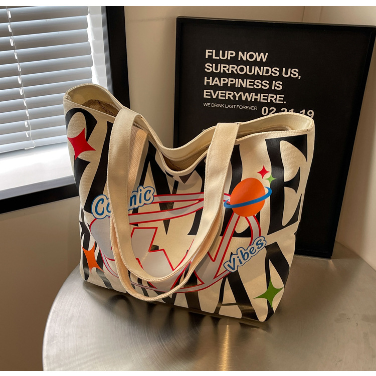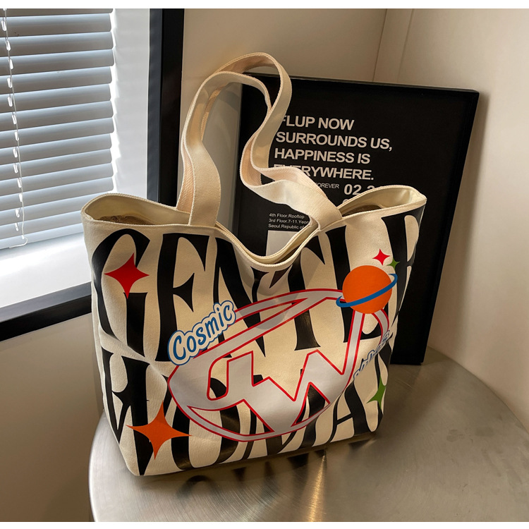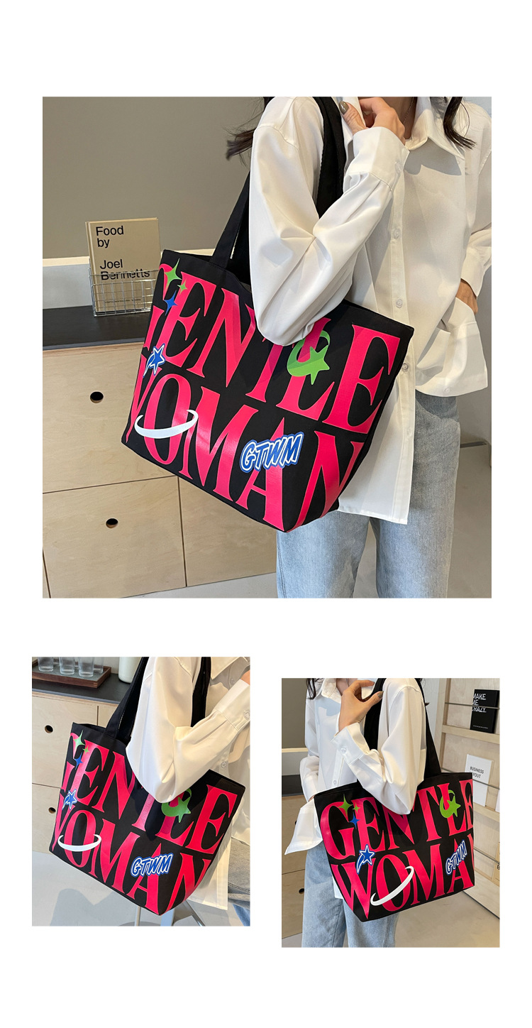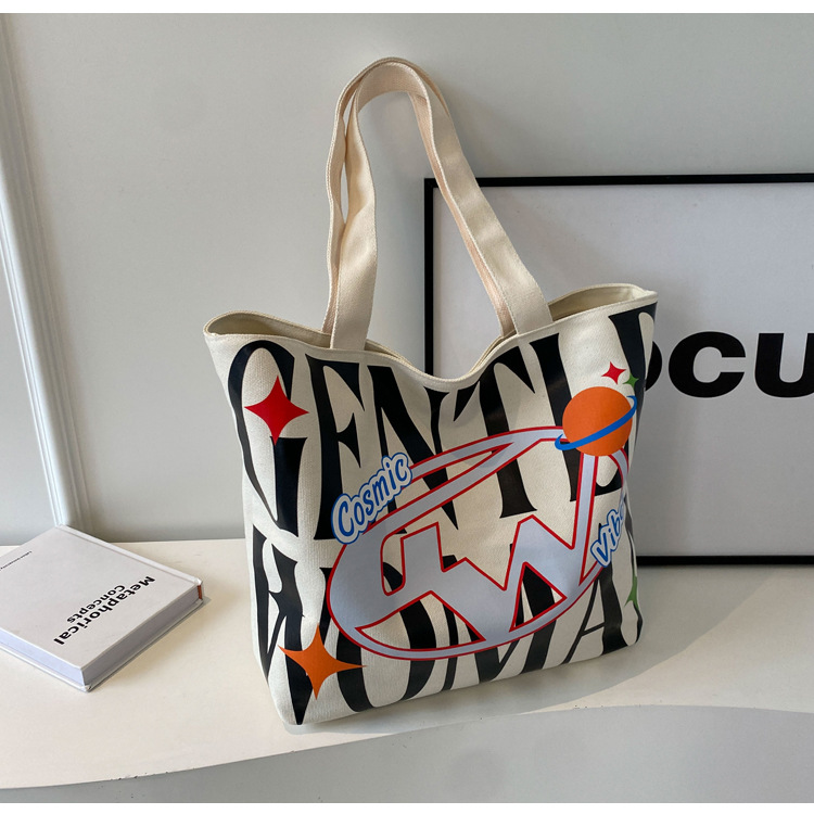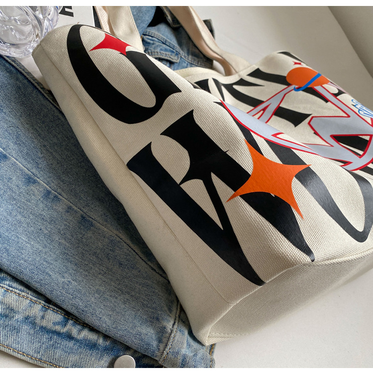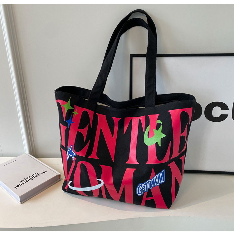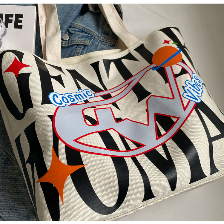 새로운 통근 캔버스 토트 백 2024 여성을위한 편지 대용량 가방 대학 학생 클래스 가방 겨드랑이 숄더백스토어 가기