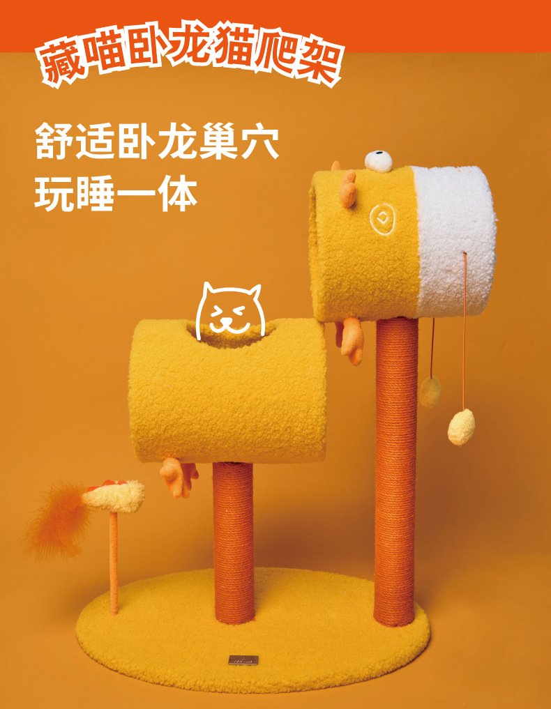 PETSVILLE Qian 긴 고양이 긁기 포스트 고양이 장난감 등반 프레임 갈기 발톱 대마 로프 긁는 공 비듬 고양이 장난감 용품 없음스토어 가기