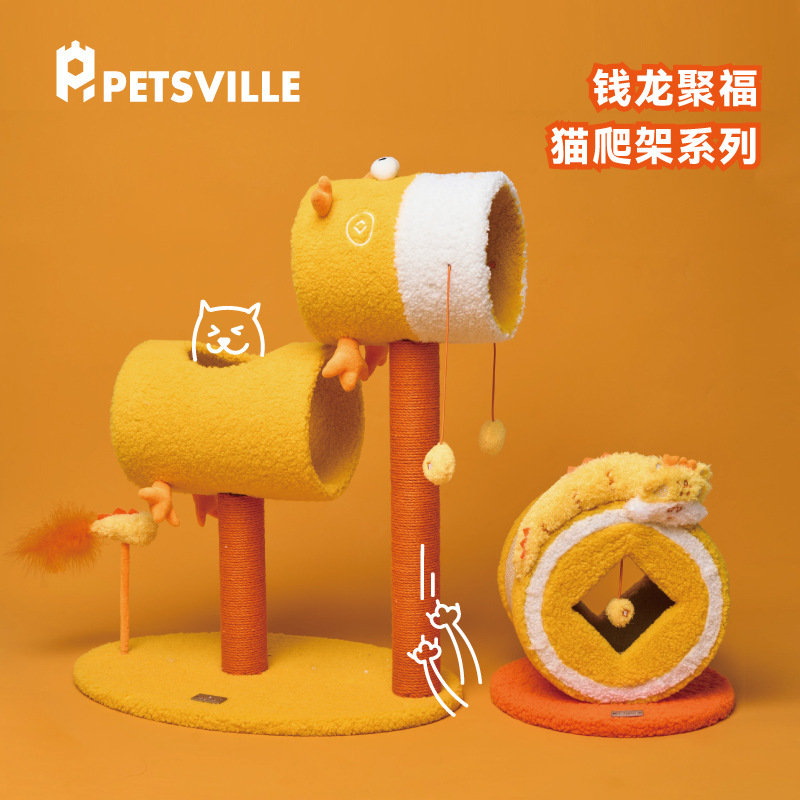 PETSVILLE Qian 긴 고양이 긁기 포스트 고양이 장난감 등반 프레임 갈기 발톱 대마 로프 긁는 공 비듬 고양이 장난감 용품 없음