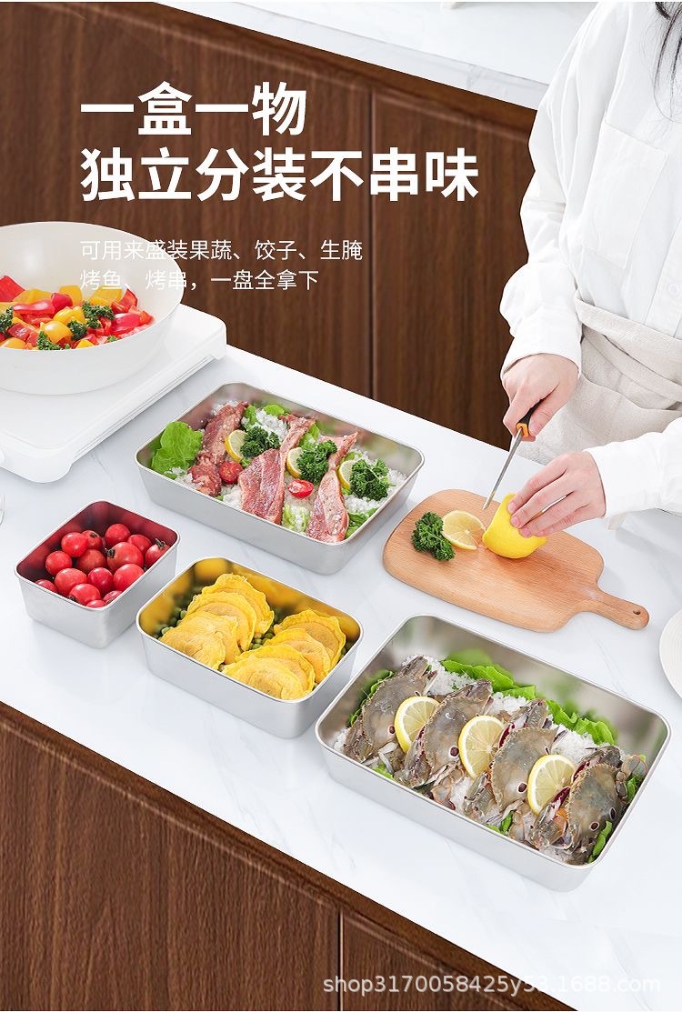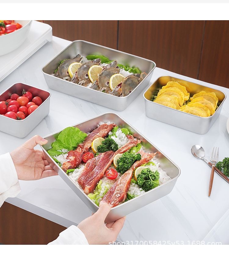 두꺼운 스테인레스 스틸 사각형 플레이트 뚜껑 가정용 직사각형 자기 작은 크리스퍼 트레이 타월 디스플레이 플레이트 사각형 분지스토어 가기