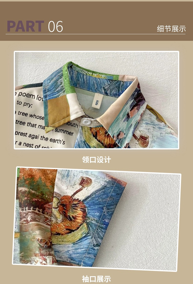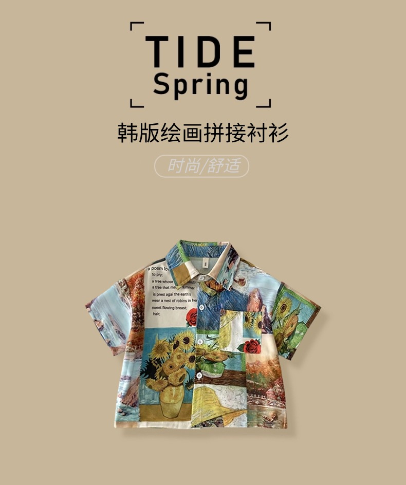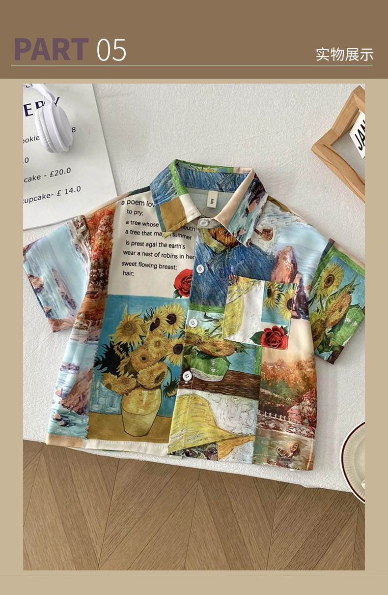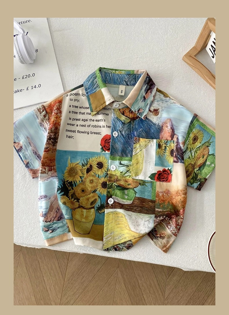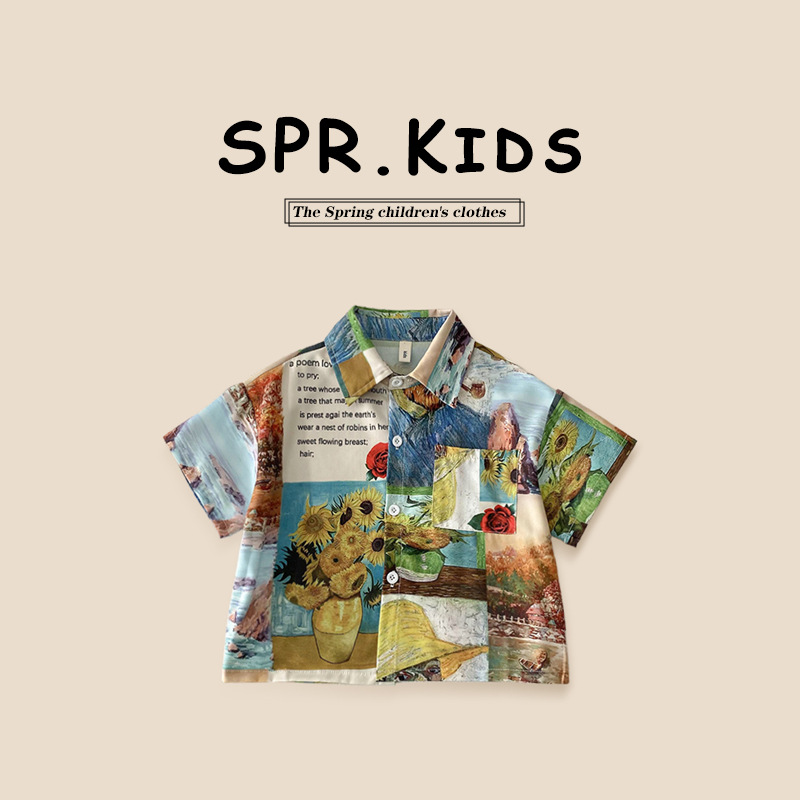 어린이 2025 여름 복고풍 유화 셔츠 소년 꽃 셔츠 중소 어린이 캐주얼 탑 옷깃 한국 스타일 셔츠스토어 가기