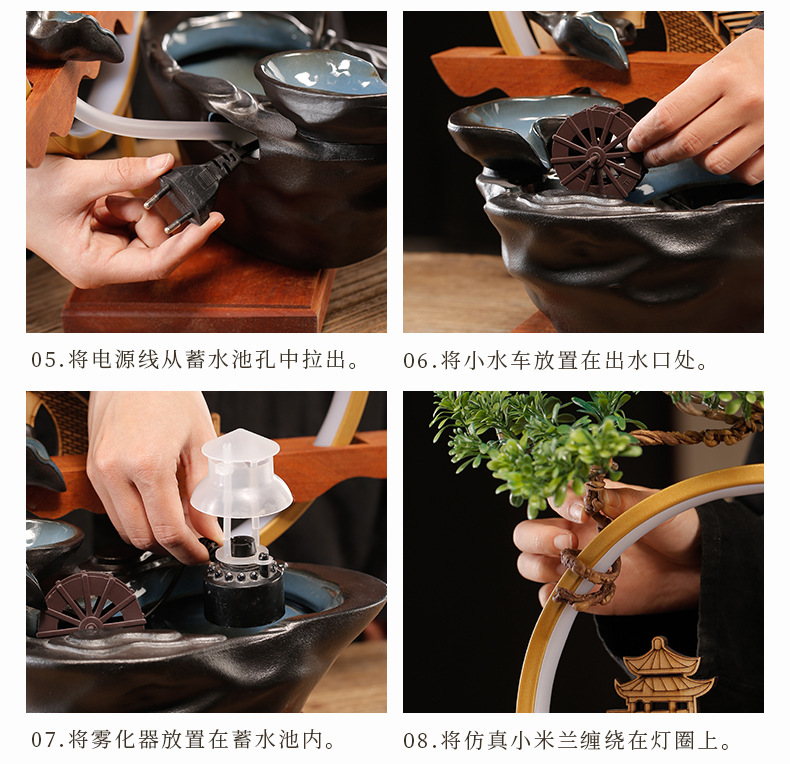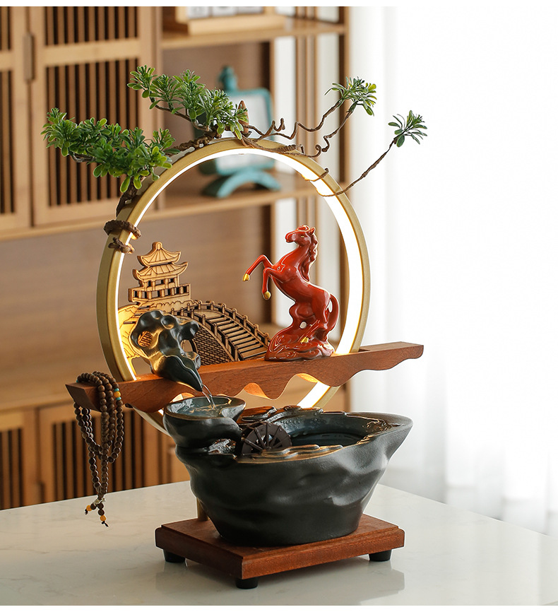 집들이 선물을 여는 중국 스타일 거실 데스크탑 순환 물 분수 풍차 풍경스토어 가기