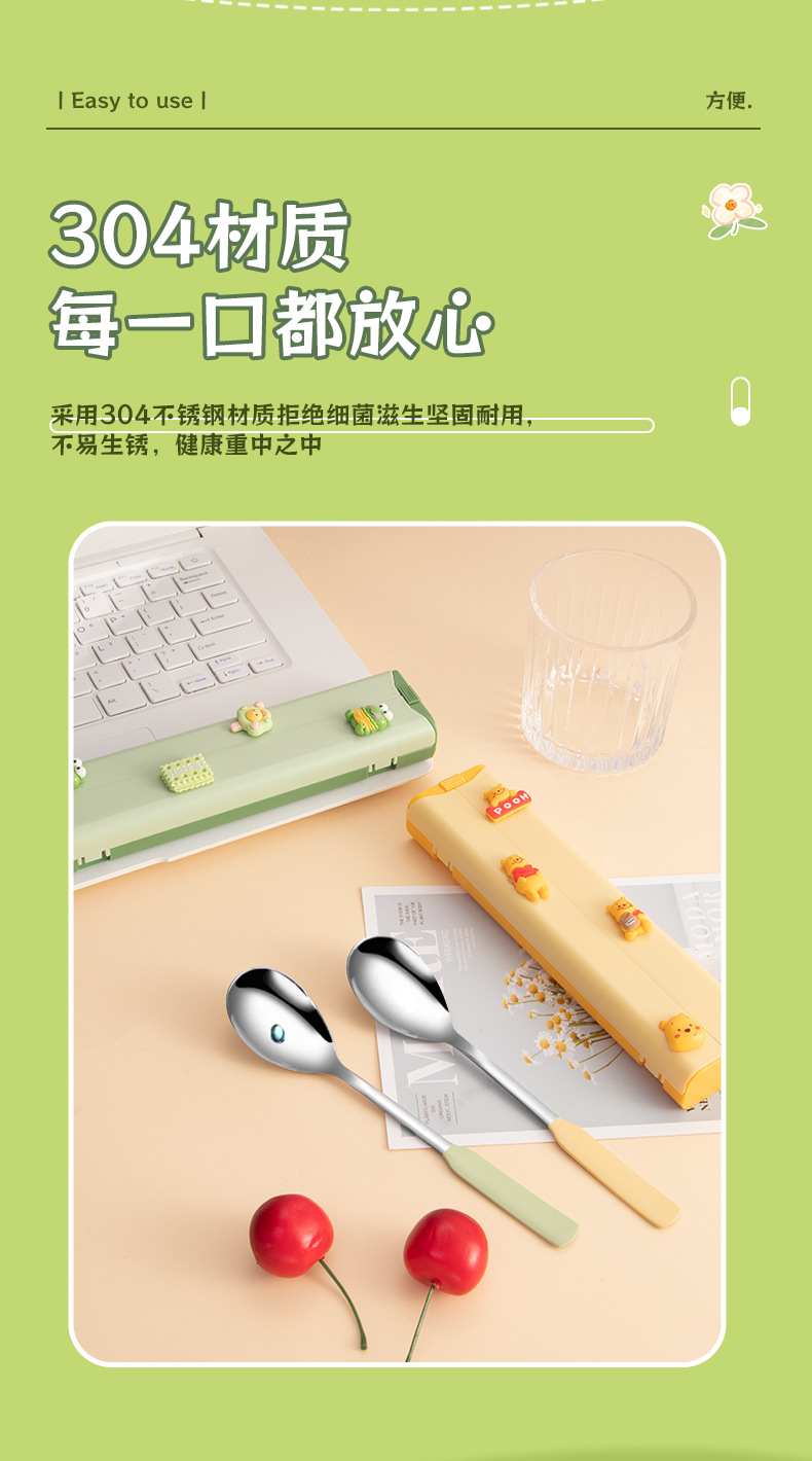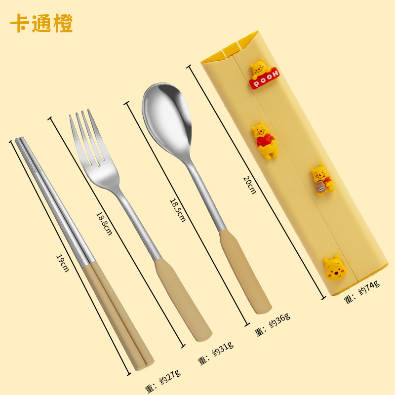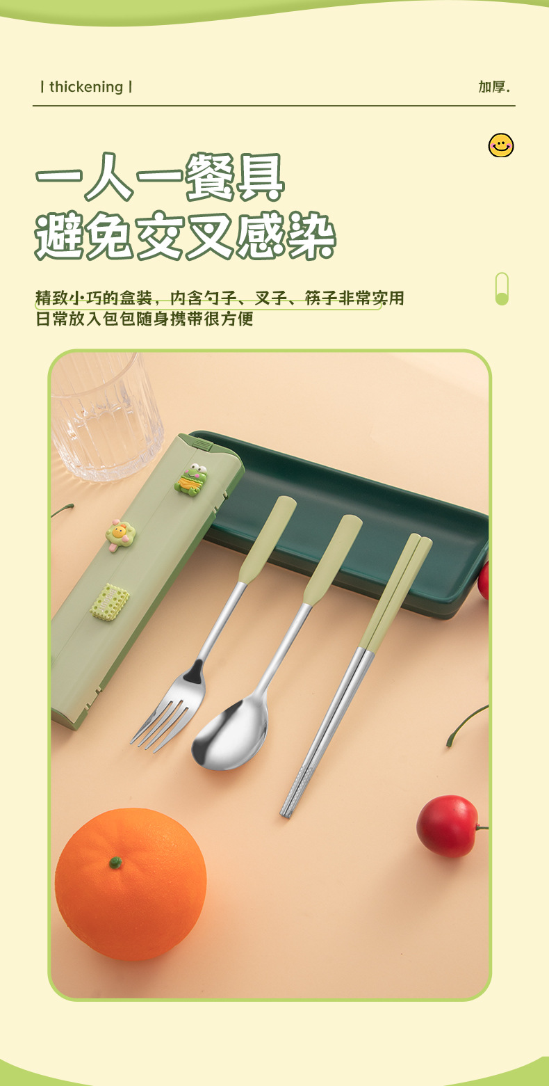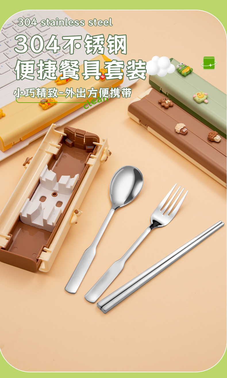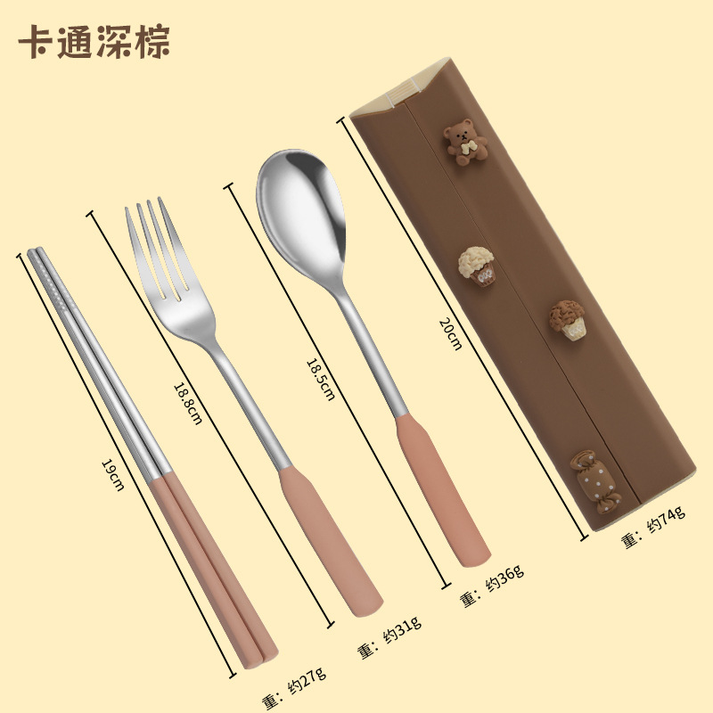 귀여운 인 스타일 식기 세트 스테인레스 스틸 스푼 포크 젓가락 선물 상자 세트 야외 학생 휴대용 식기스토어 가기