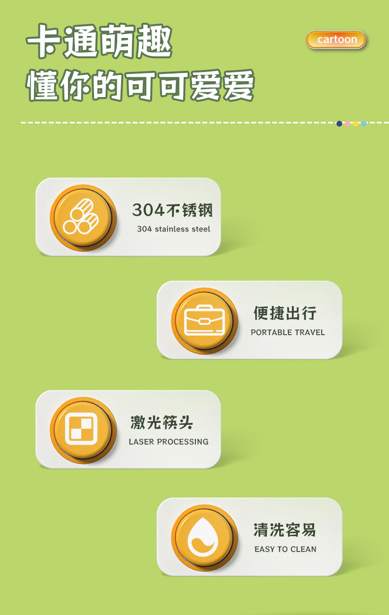 귀여운 인 스타일 식기 세트 스테인레스 스틸 스푼 포크 젓가락 선물 상자 세트 야외 학생 휴대용 식기